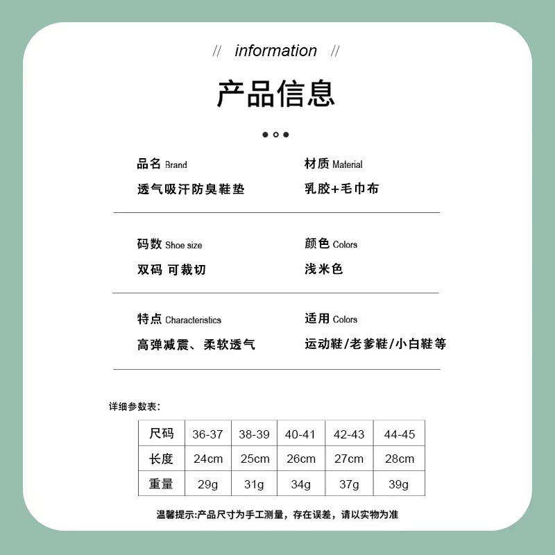 | nameOriginal | Insole Sweat Absorbent Deodorant Latex Sports Breathable Leather Insole Women's Soft Bottom Comfortable Massage Cuttable Summer Thin |