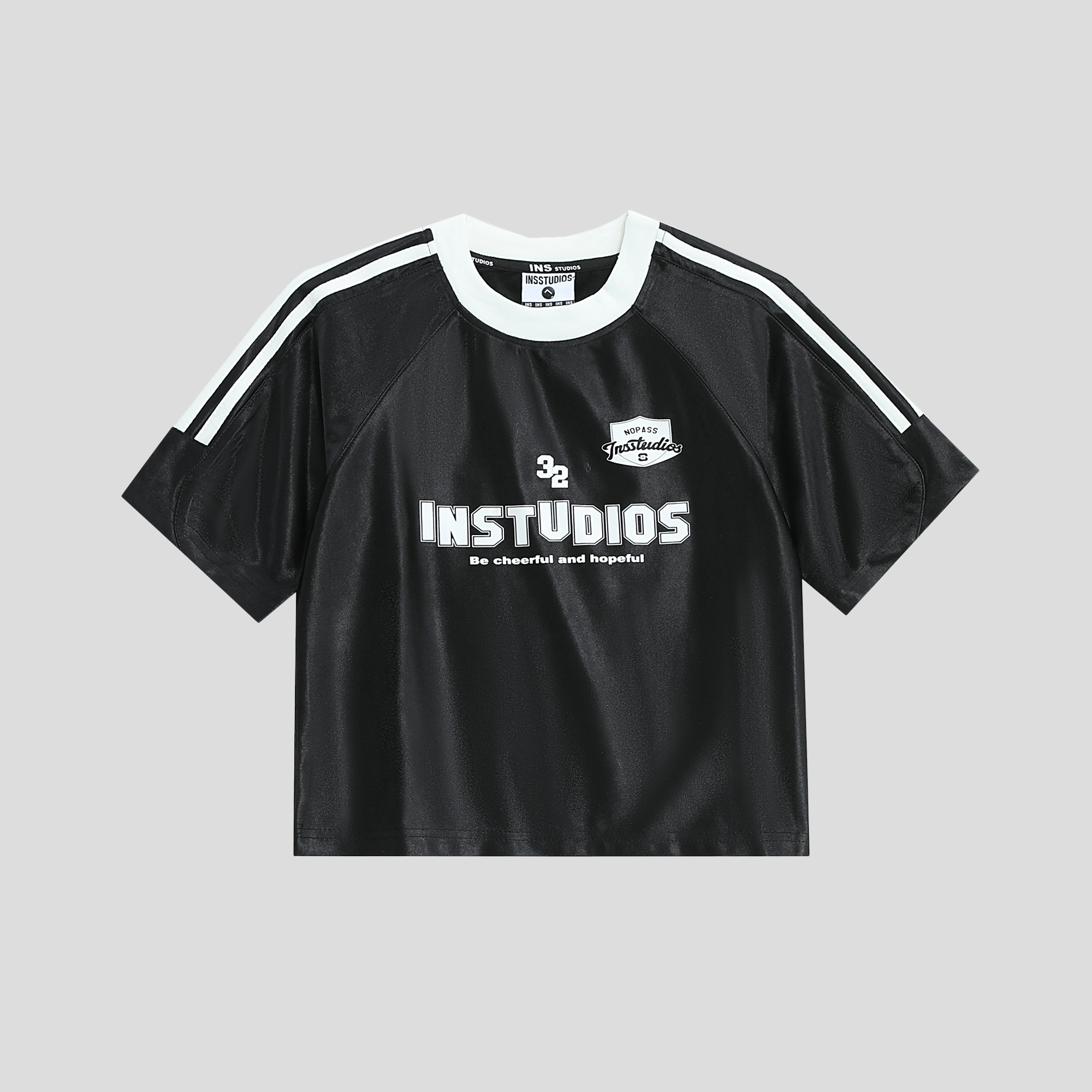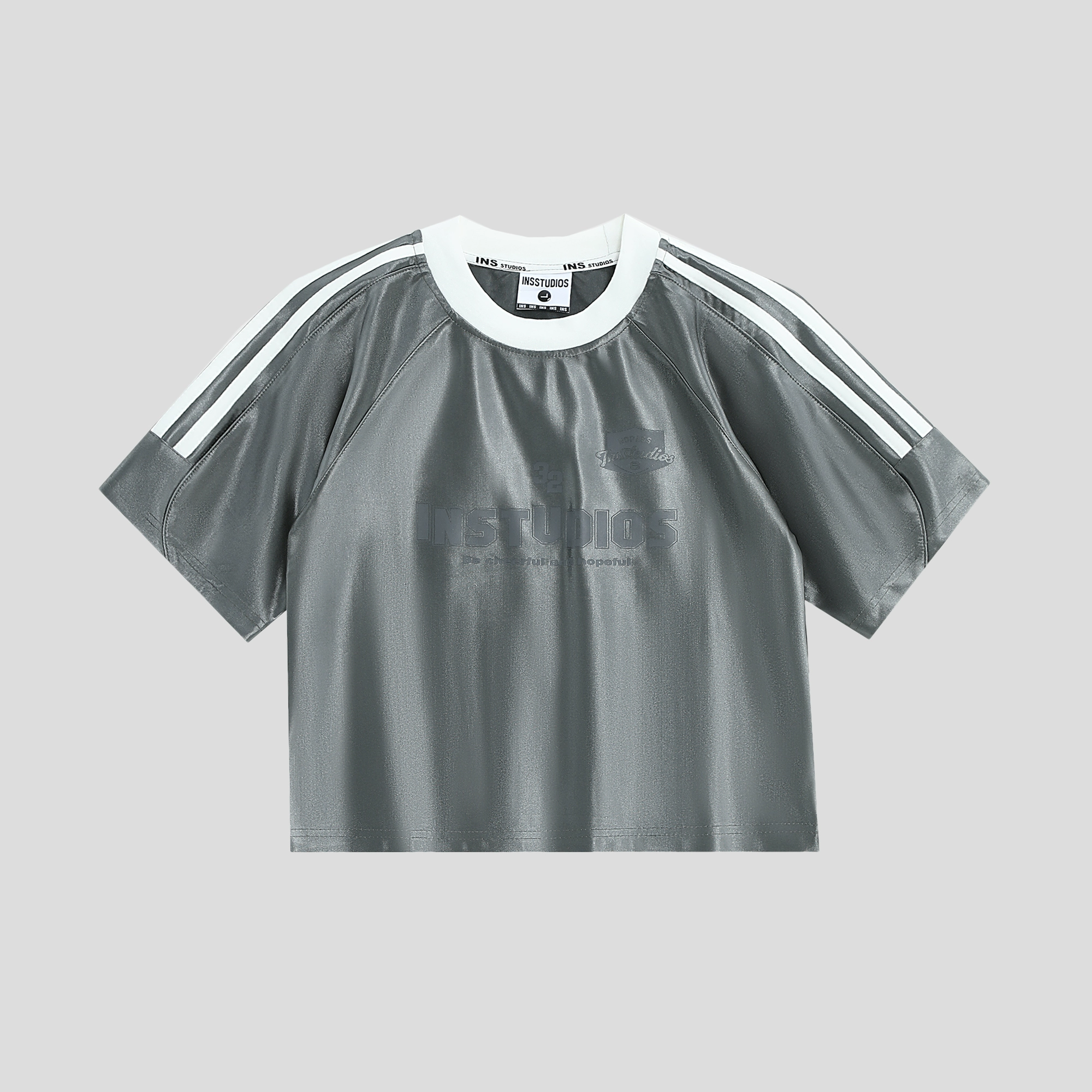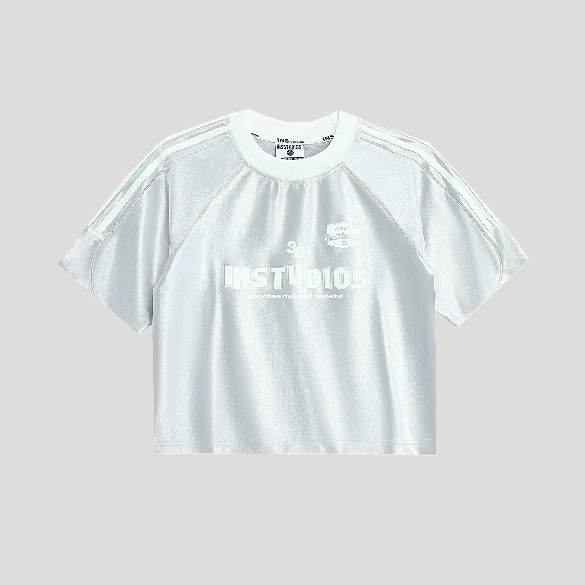 | nameOriginal | INSstudios glossy three-stripe hot girl short-sleeved top |