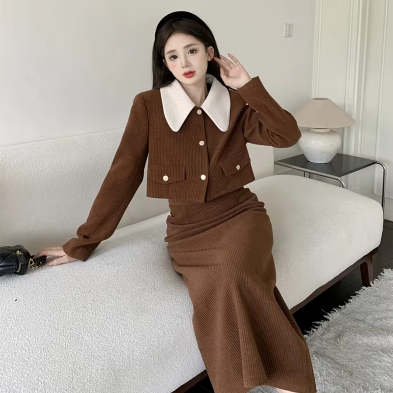 | nameOriginal | instahot small fragrance suit 2023 autumn and winter new Hepburn style jacket top skirt two-piece set for women |