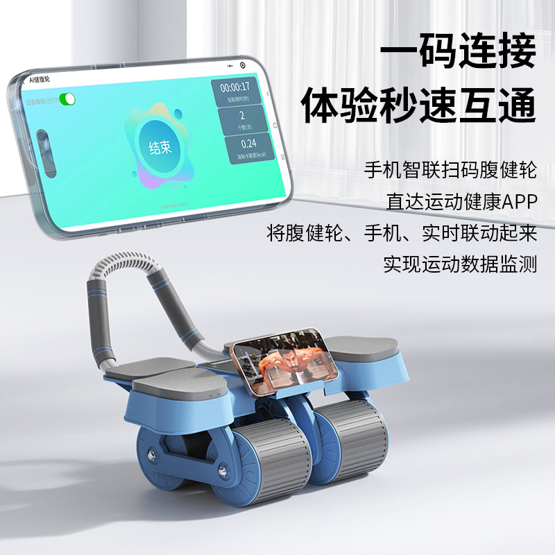 Installation-free AI intelligent interconnection four-wheel four-elbow support automatic rebound abdominal wheel home belly rolling abdominal muscle training artifact