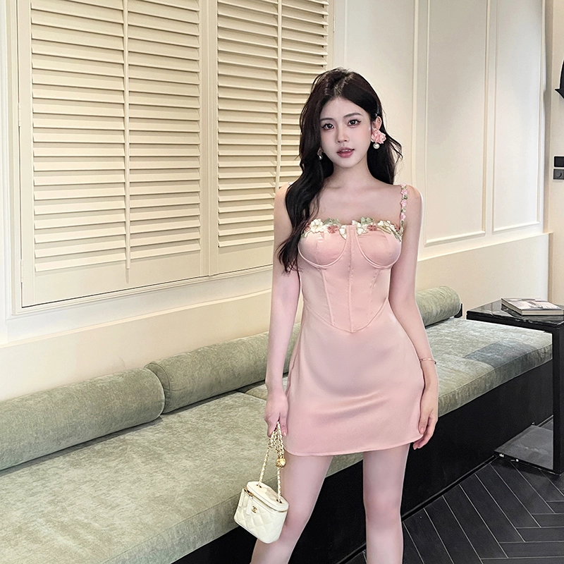 | nameOriginal | instunning French pink flower suspender skirt |