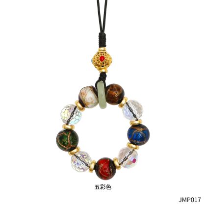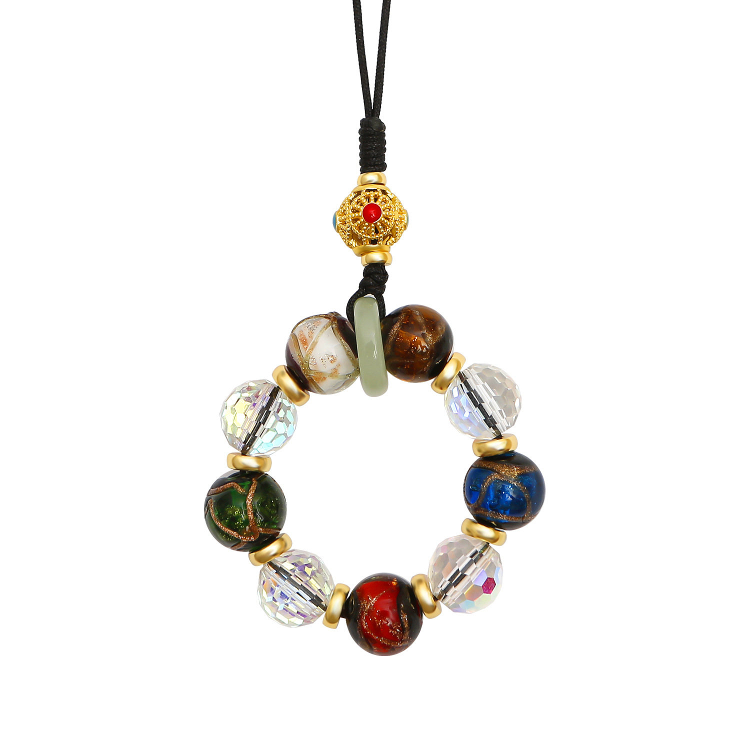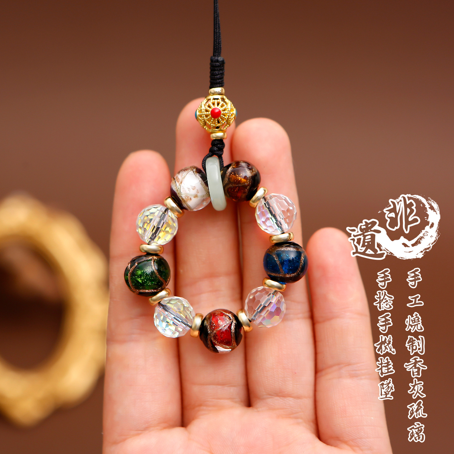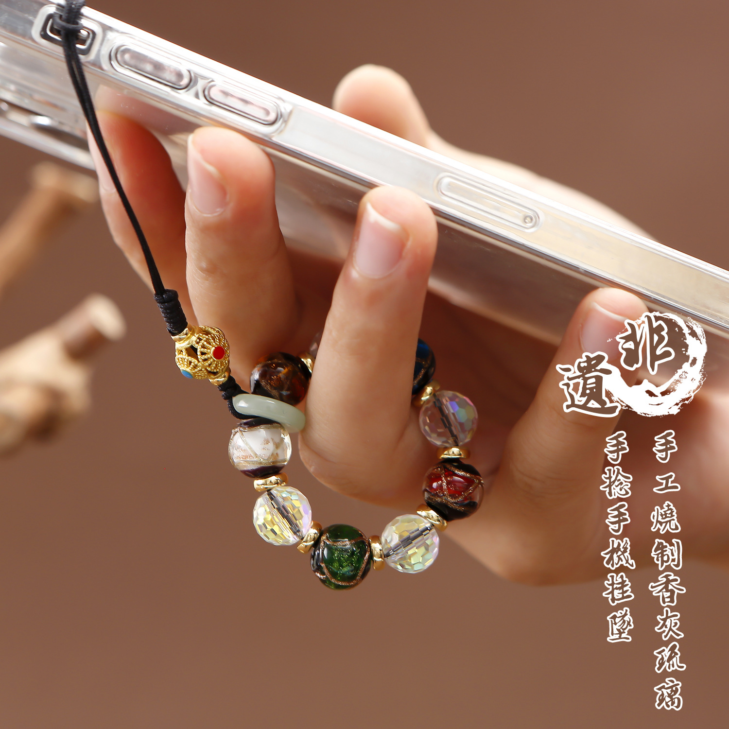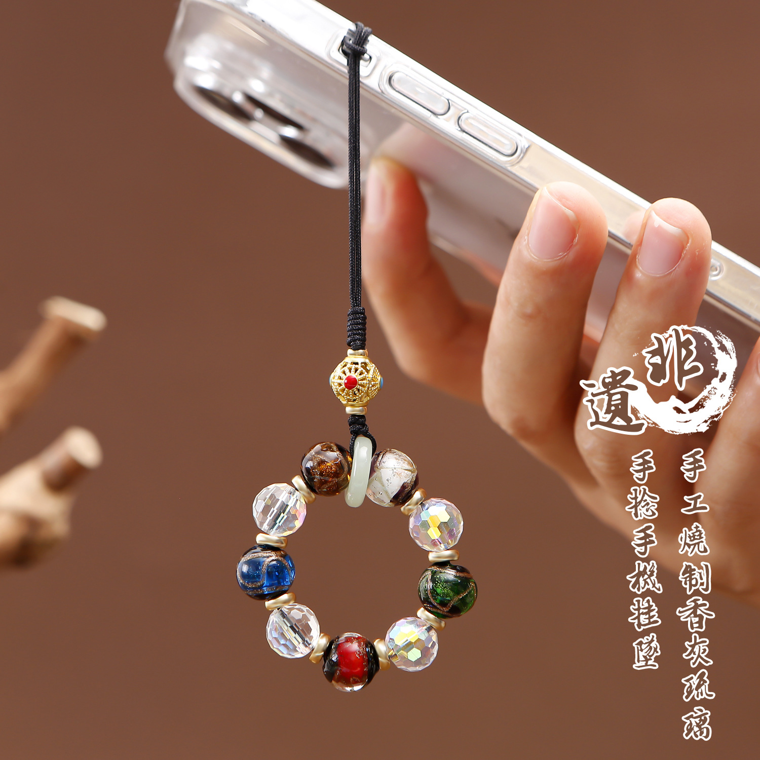 Intangible Cultural Heritage Hand-Woven Fragrant Grey Glass Hand-Twisted Mobile Phone Pendant Round Bead Ring Hand-Twisted Anti-lost Mobile Phone Chain Pendant