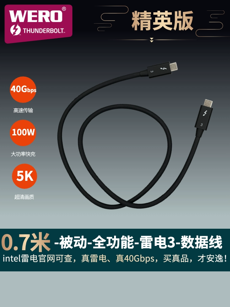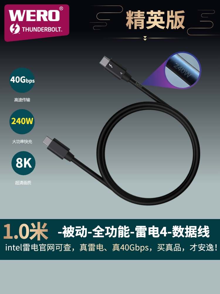 | nameOriginal | Intel officially recommends WERO Elite Edition fast charging PD100W/EPR240W Thunderbolt 3/4/5 data transmission cable |