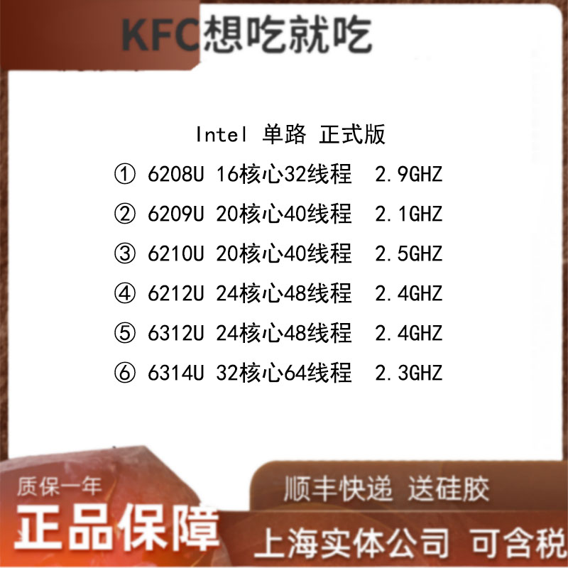 | nameOriginal | Intel single-channel server CPU GOLD 8341C/6209U/6210U/6212U/6312U/6314U |