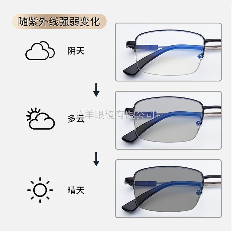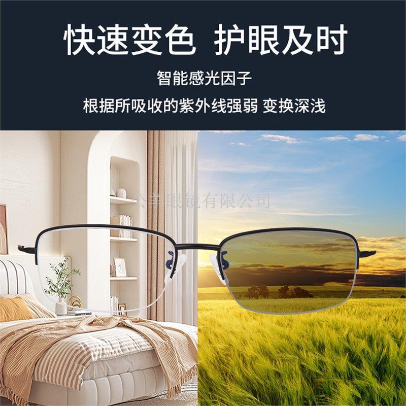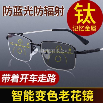 Intelligent photosensitive color change progressive multifocal far and near three-use anti-blue light flat mirror manufacturers reading glasses