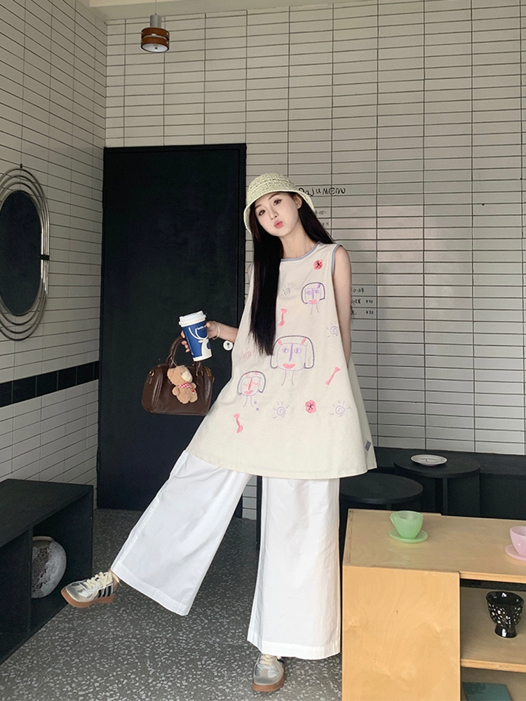 | nameOriginal | Interesting color block slit wide leg casual trousers with embroidery |