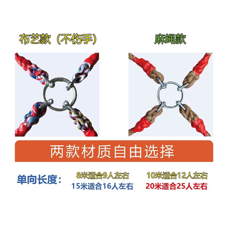 Interesting tug-of-war rope hemp rope triangle adult children's kindergarten multi-directional multi-person tug-of-war competition special rope