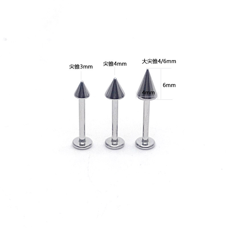 | nameOriginal | Internal thread sharp cone lip nail internal tooth stainless steel ear bone nail flat bottom rod wine nest nail 1.0 tooth thread 8-19mm |