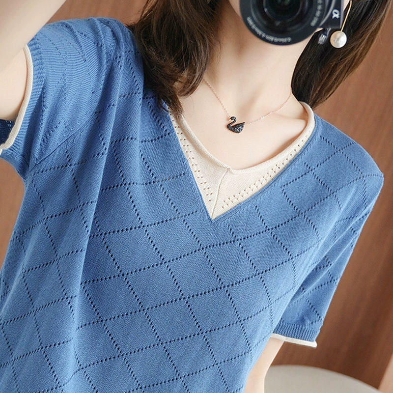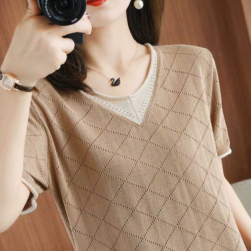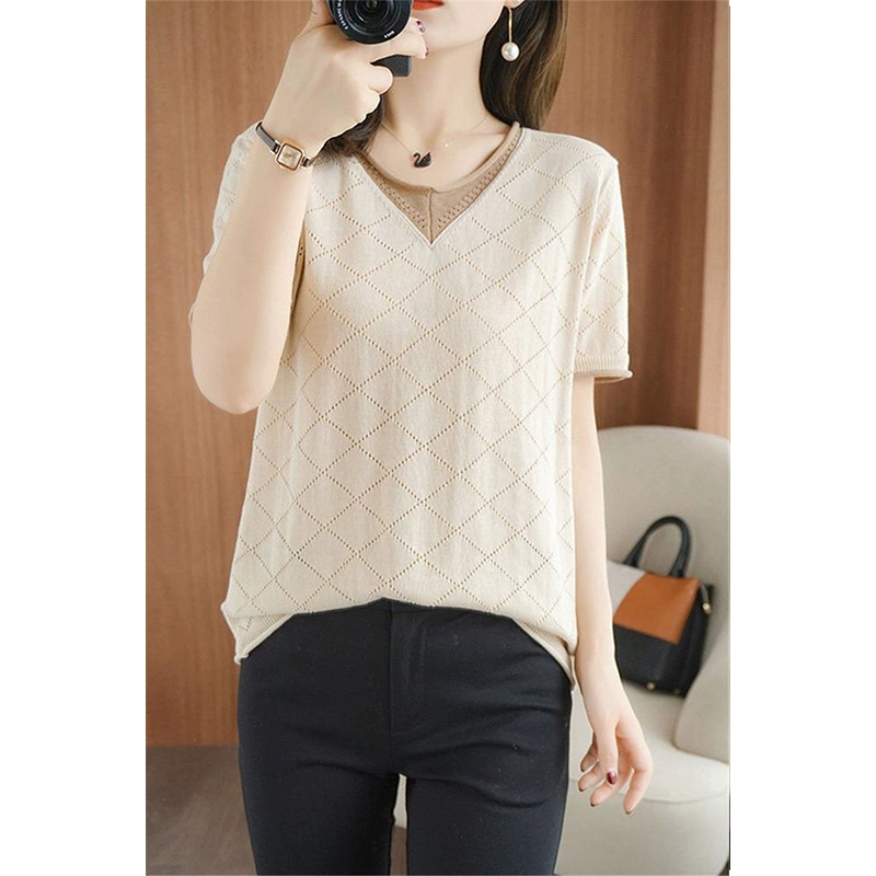International big-name original short-sleeved v-neck hollow T-shirt with cut logo