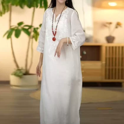 | nameOriginal | International Ramie Heavy Industry V-neck embroidered long style art |
