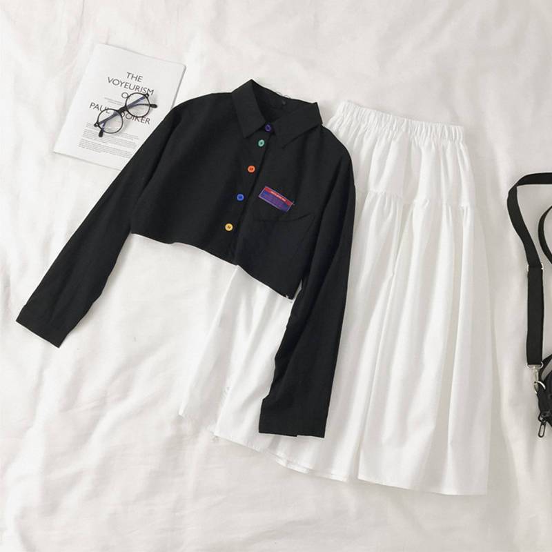| nameOriginal | Internet Celebrant Fashion Two-piece suit Women's Autumn 2024 New Korean Short Long Sleeve Shirt High Waist Skirt suit |