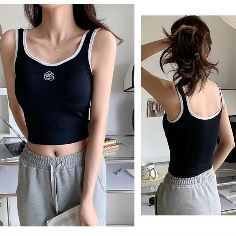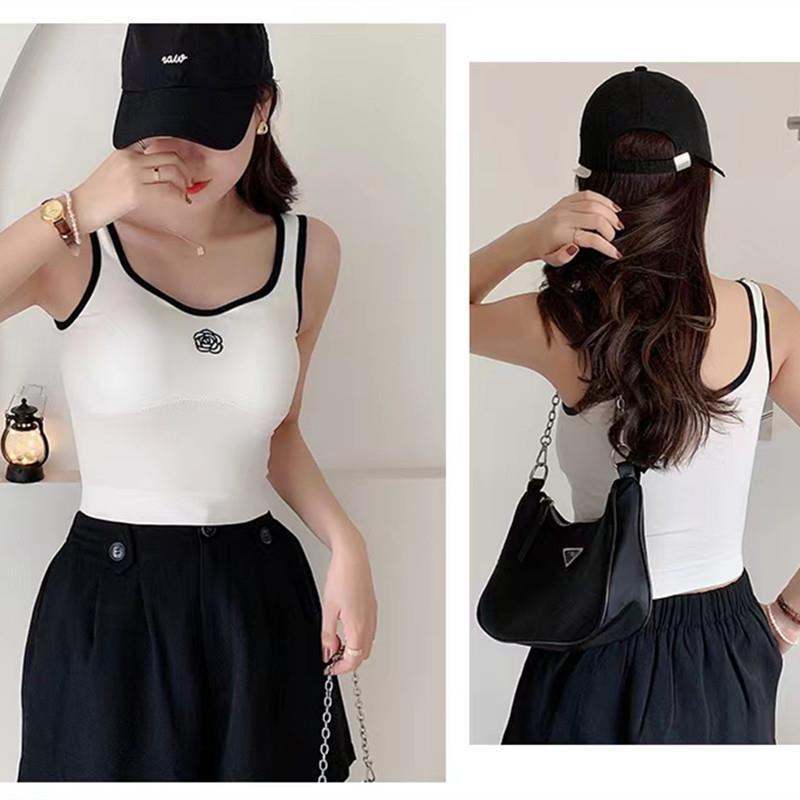 Internet Celebrated Camellia Cotton Niche Inner Camisole Vest Women's Fashionable Outer Wearing Underwear with Chest Pad