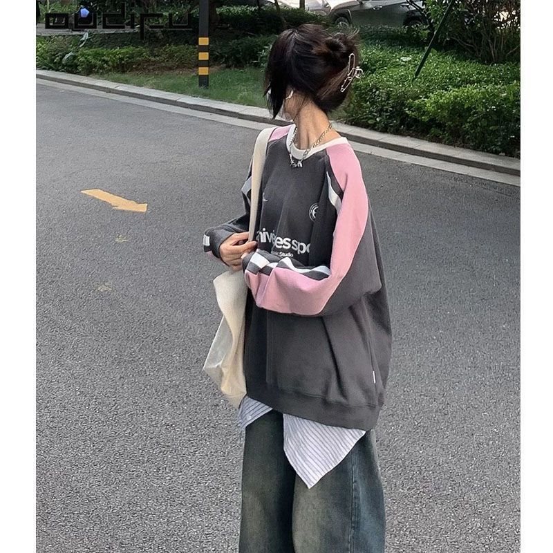 | nameOriginal | Internet celebrity american retro contrast color ribbon pullover sweater women's autumn trendy loose casual couple top trendy |