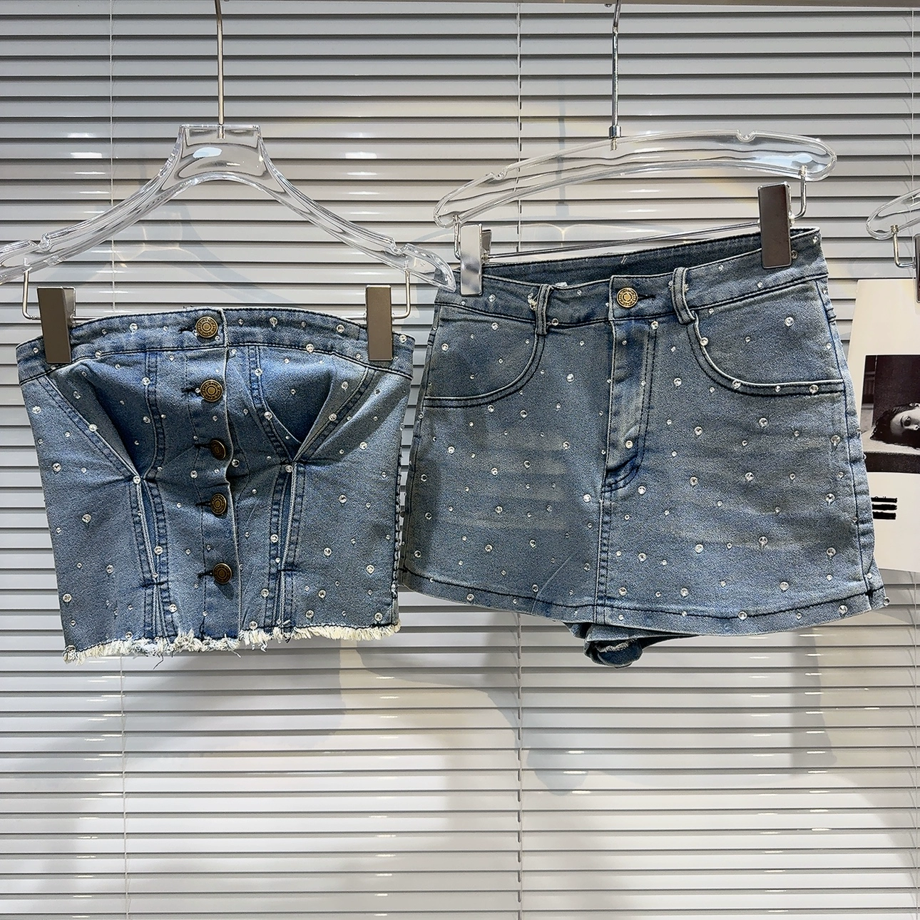 | nameOriginal | Internet celebrity American style raw edge tube top and hip denim hot rhinestones |