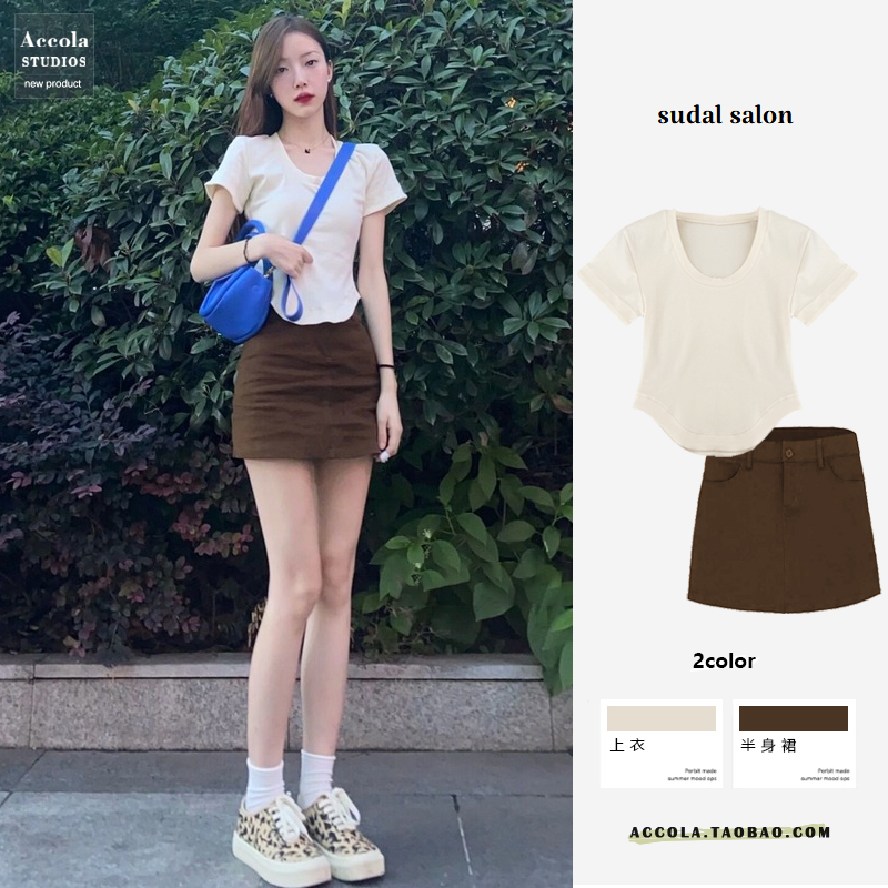 | nameOriginal | Internet celebrity apricot hip-hugging two-piece Hong Kong style street T-shirt |