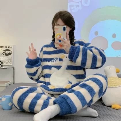 | nameOriginal | Internet celebrity autumn and winter thickened flannel striped pajamas |