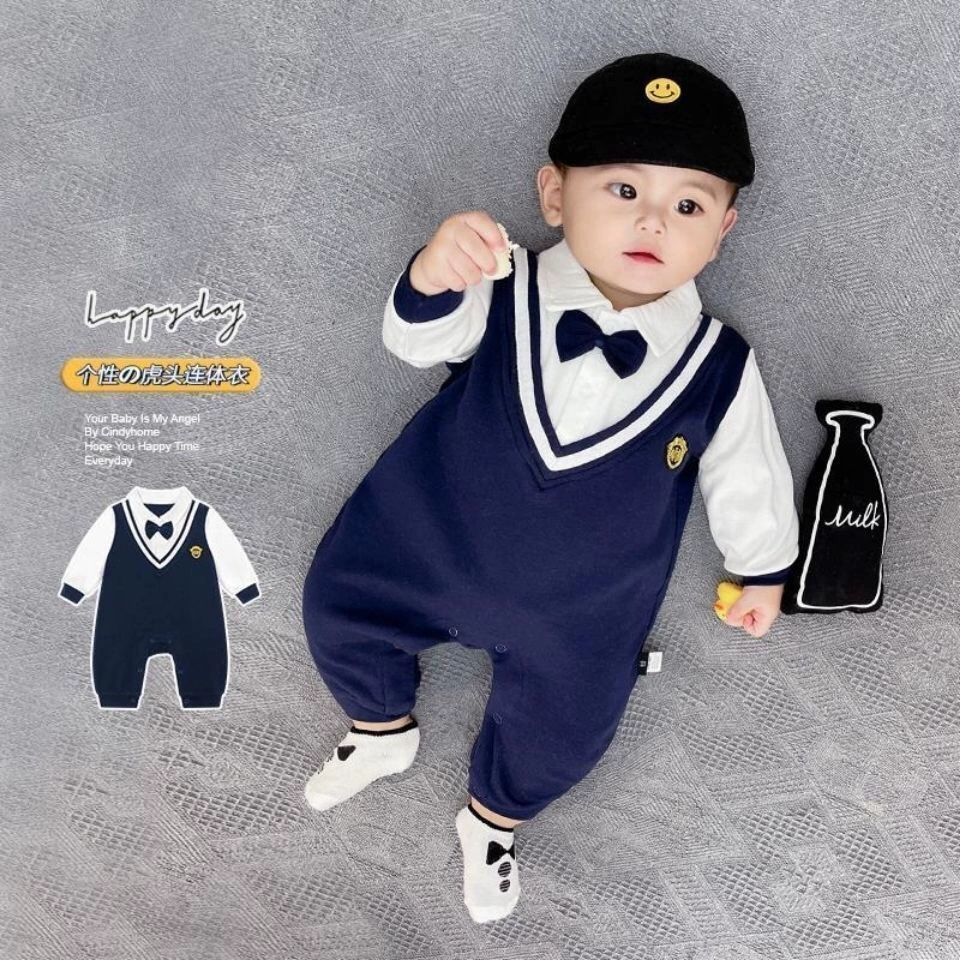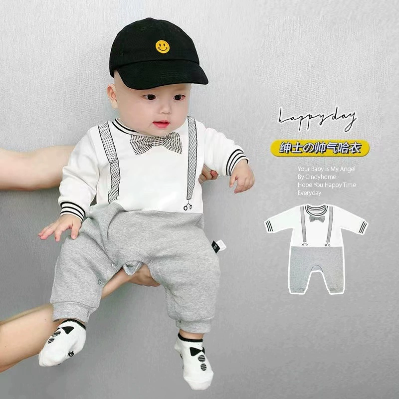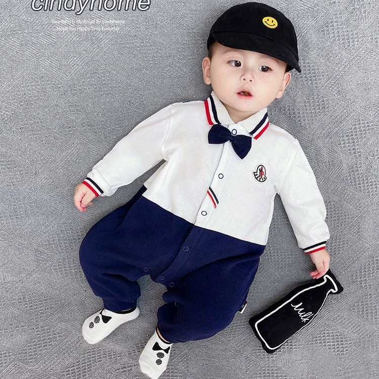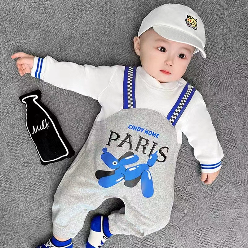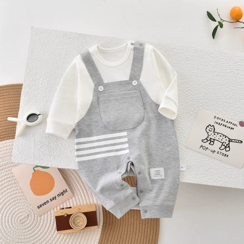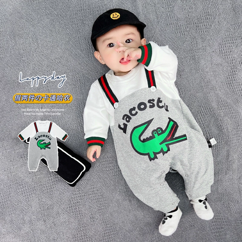 | nameOriginal | Internet celebrity baby jumpsuit spring and autumn pure cotton thin section male and female baby crawling suit long-sleeved newborn clothes fake two-piece trendy |