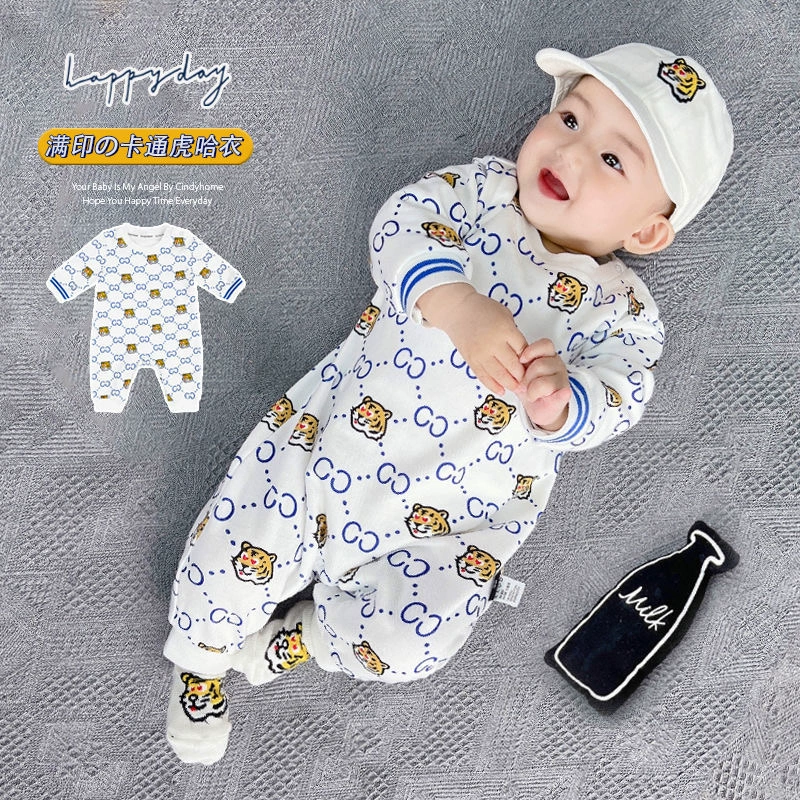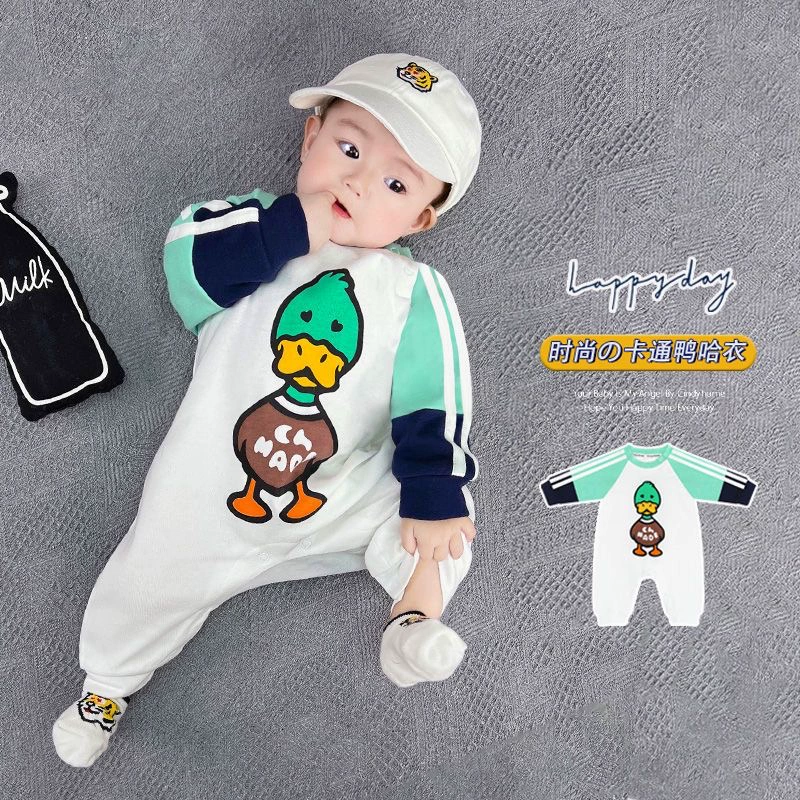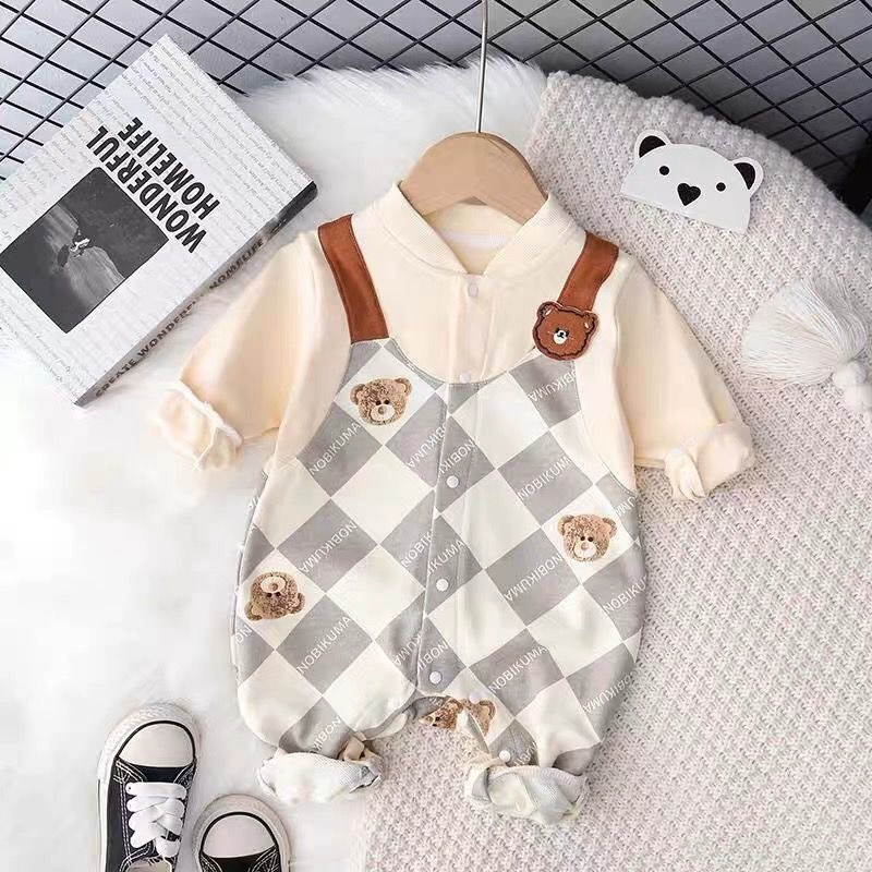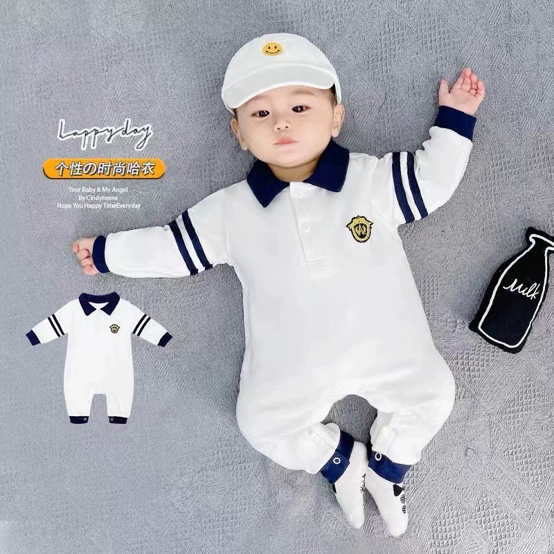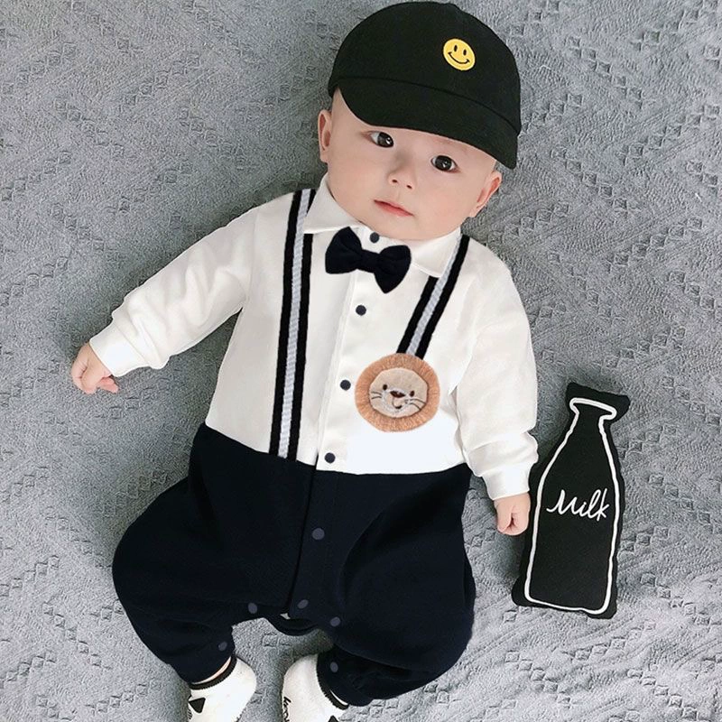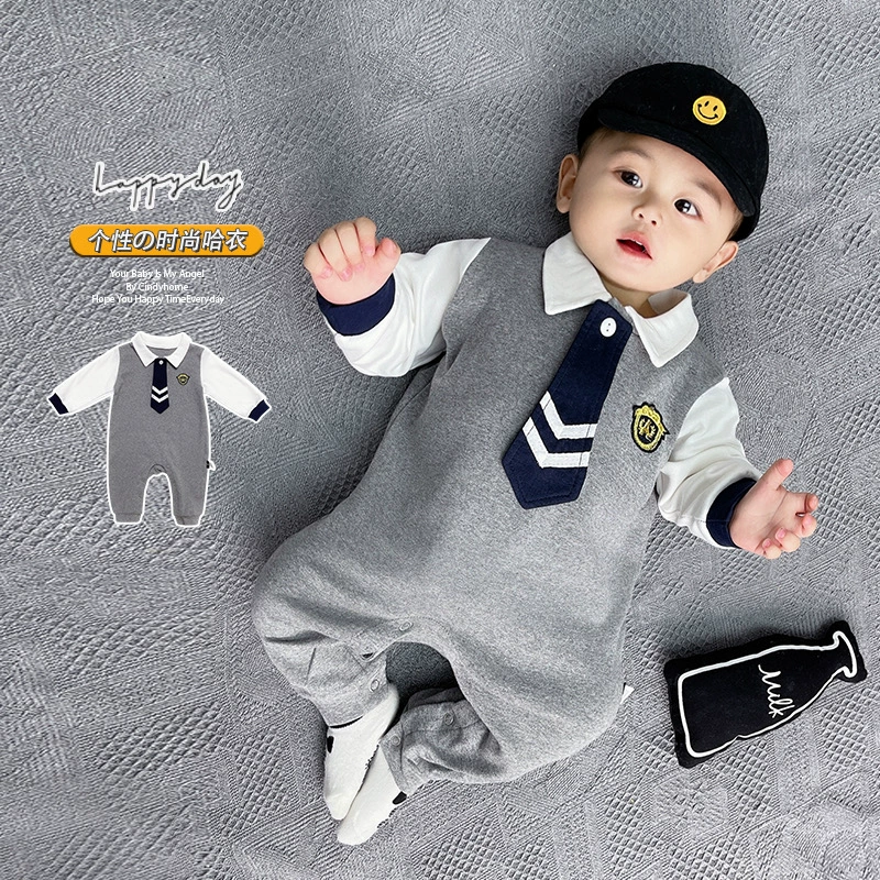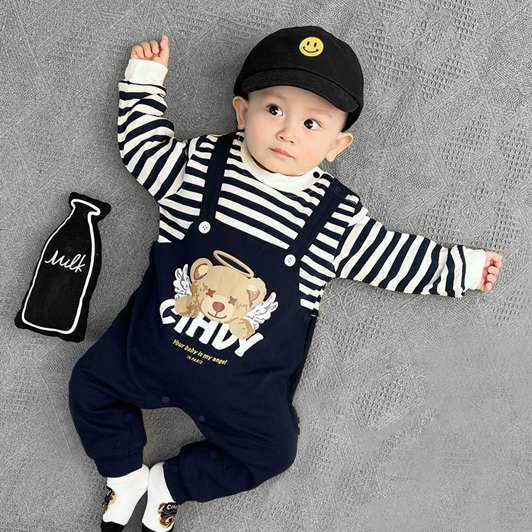 | nameOriginal | Internet celebrity baby jumpsuit spring and autumn pure cotton thin section male and female baby crawling suit long-sleeved newborn clothes fake two-piece trendy |