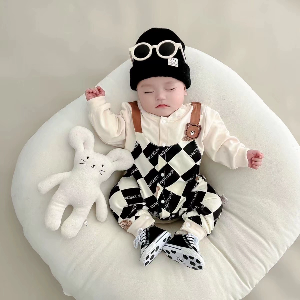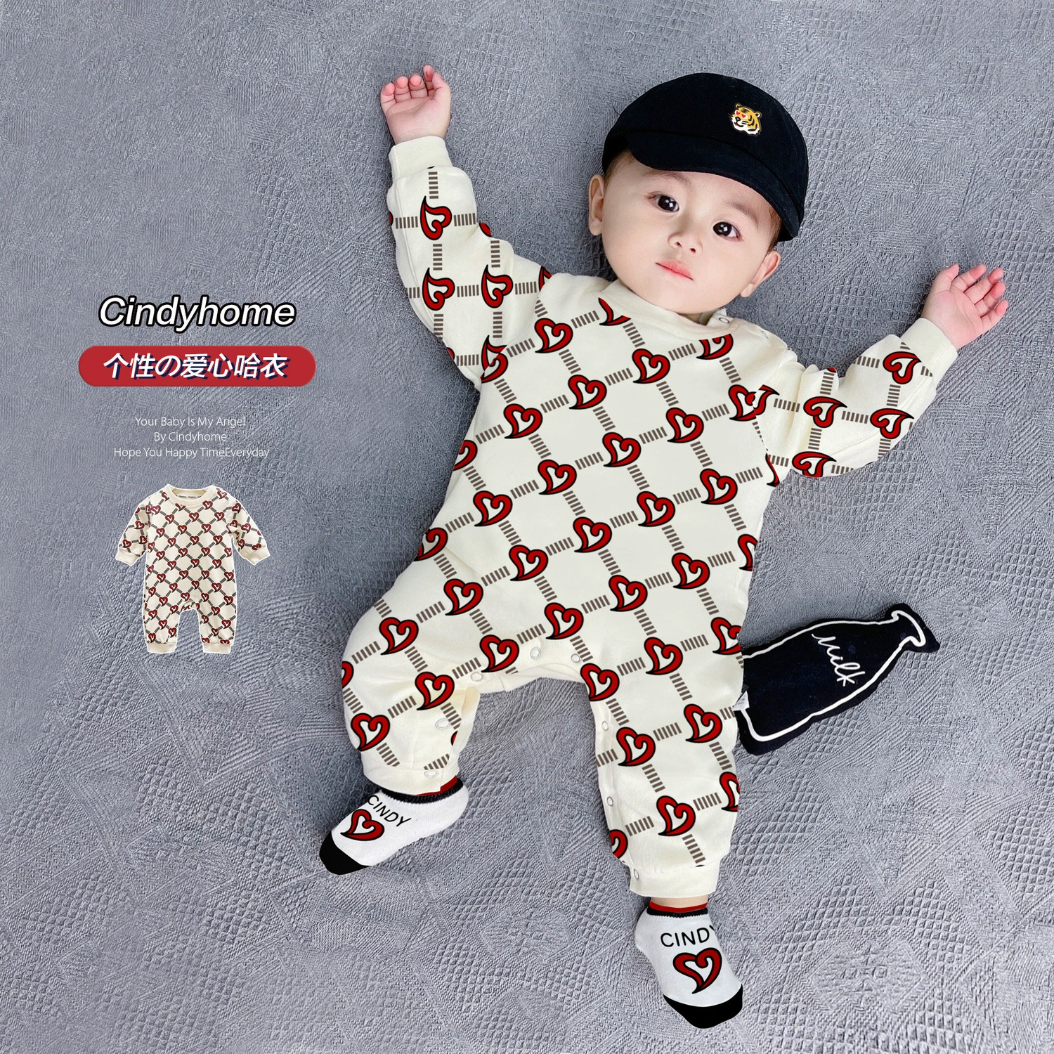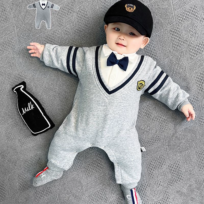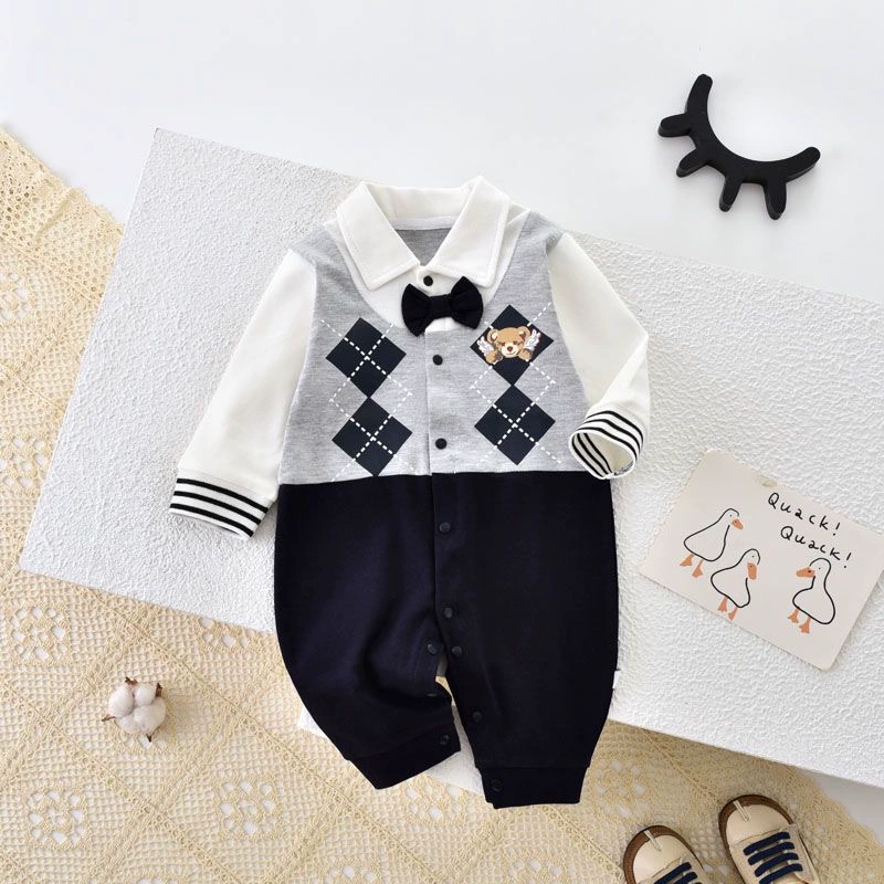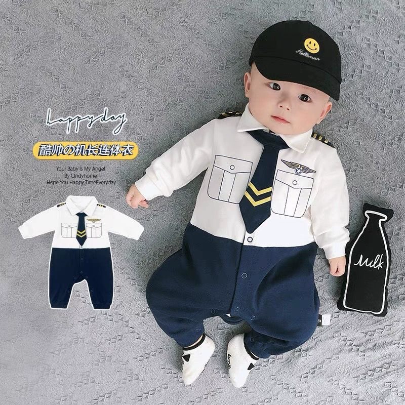 | nameOriginal | Internet celebrity baby jumpsuit spring and autumn pure cotton thin section male and female baby crawling suit long-sleeved newborn clothes fake two-piece trendy |
