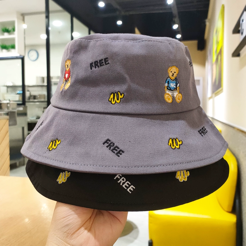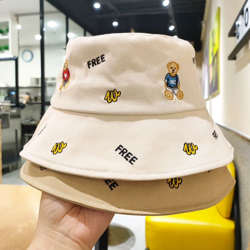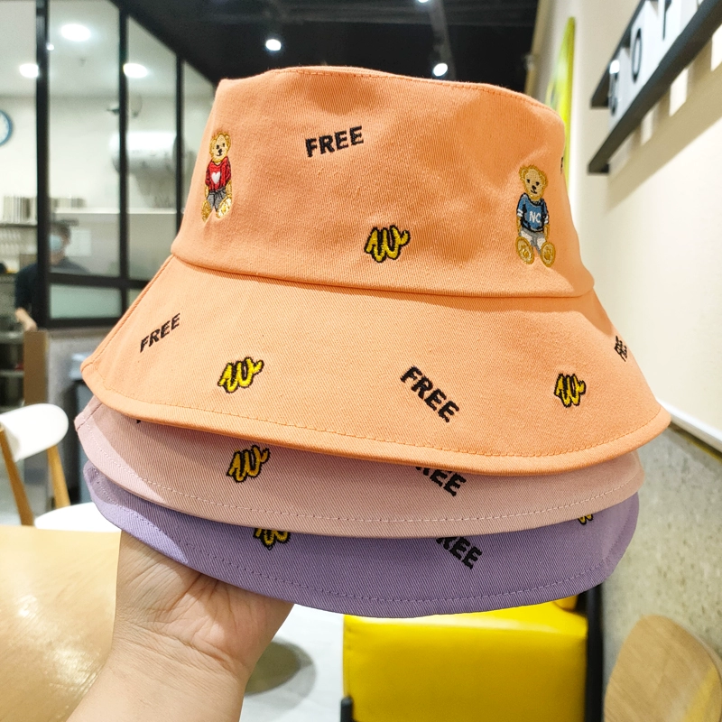 Net Red Bear Fisherman Hat Girl Summer Casual Outdoor Embroidery Letter Pot Hood