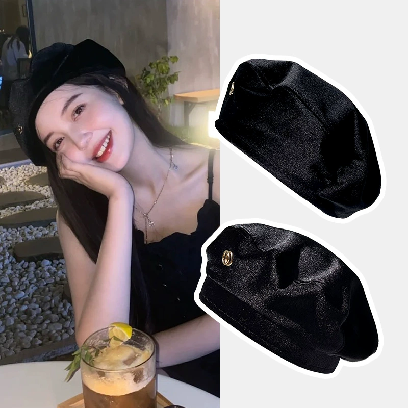 | nameOriginal | Internet celebrity beret women's autumn and winter small fragrant velvet black fashion versatile trendy retro Hong Kong style pure cotton bud hat |