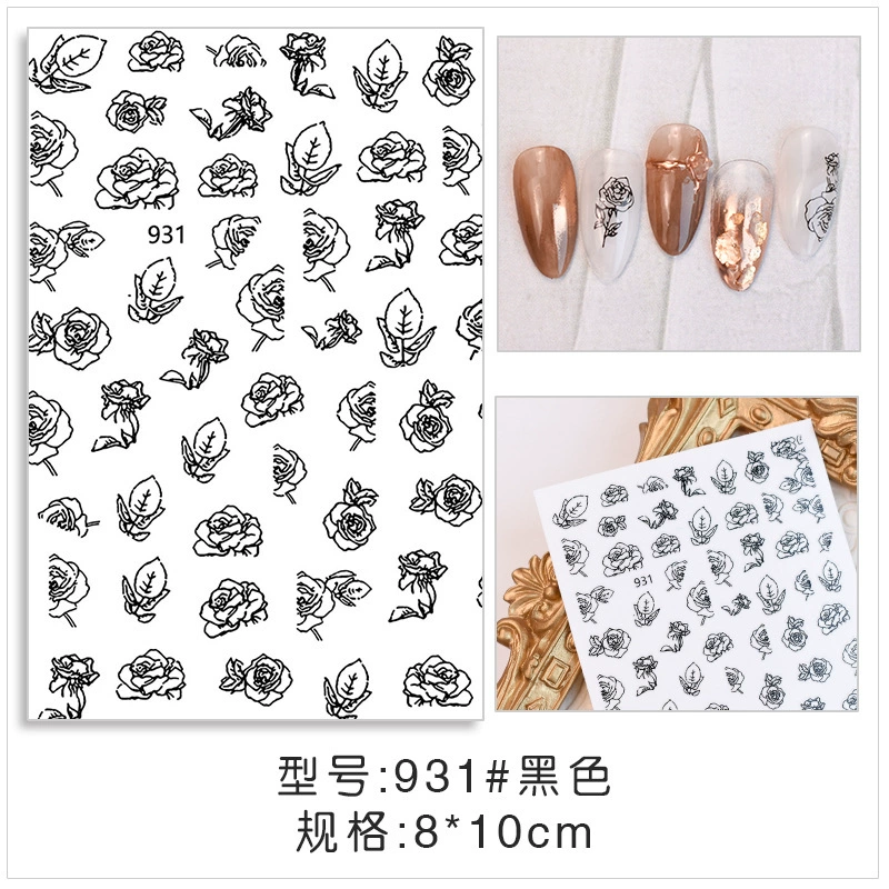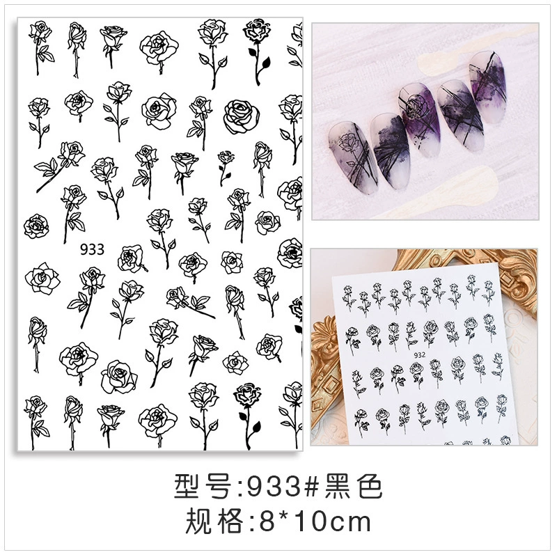 | nameOriginal | Internet celebrity black and white color carved rose sticker manicure |