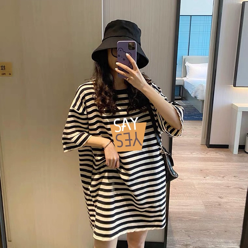 | nameOriginal | Internet celebrity black and white striped short-sleeved summer ins top T-shirt |
