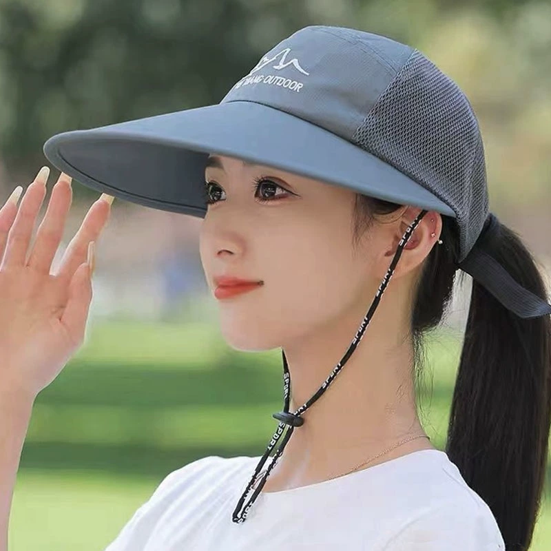 Internet celebrity breathable female fashion big along the windproof rope sun hat