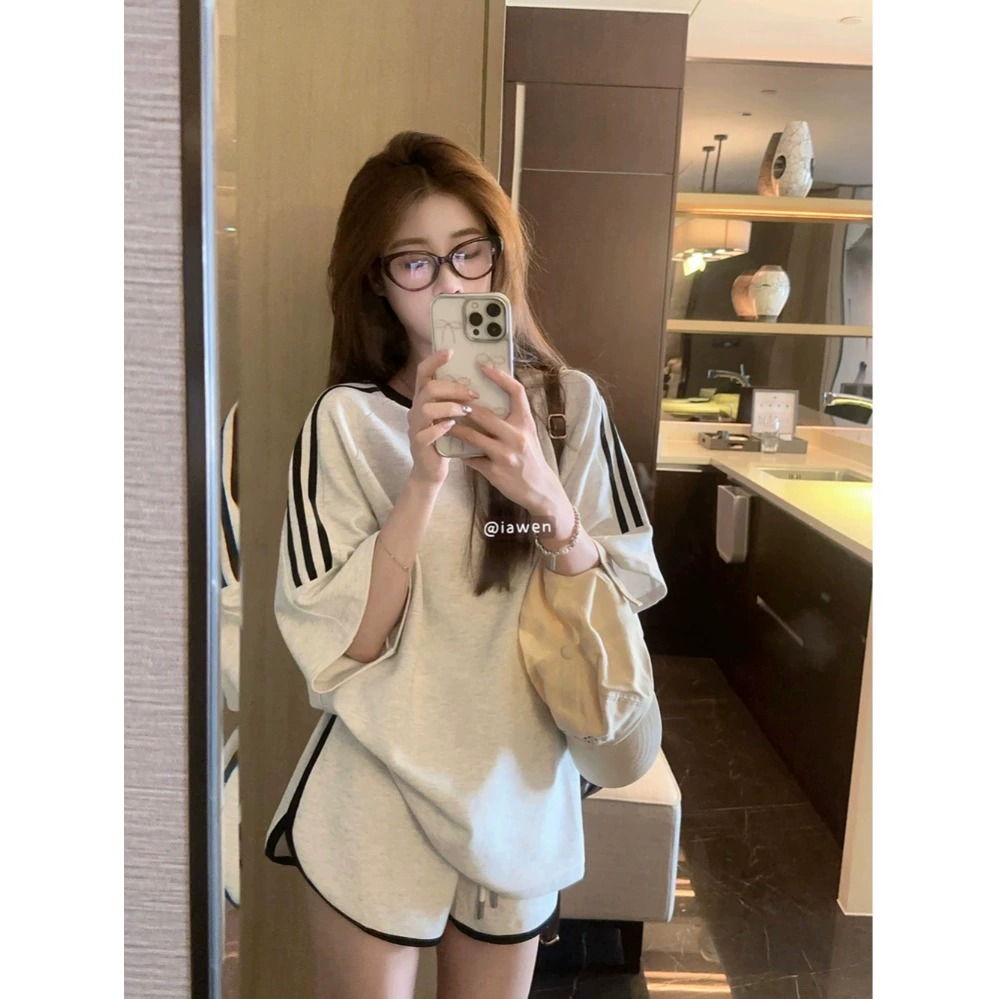 | nameOriginal | Internet celebrity casual contrasting color round neck drawstring two-piece T-shirt |