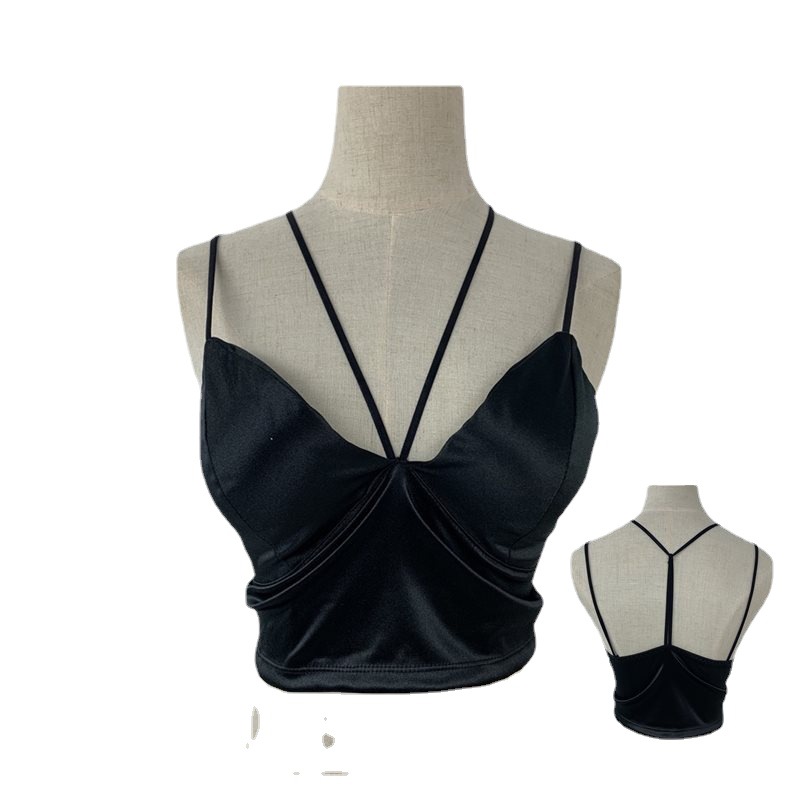 Internet Celebrity Caution Machine Hanging Neck Silk and Satin Wrapped Chest Underwear Women's V-neck Base Outer Wear Sling Small Vest with Chest Pad Tube Top