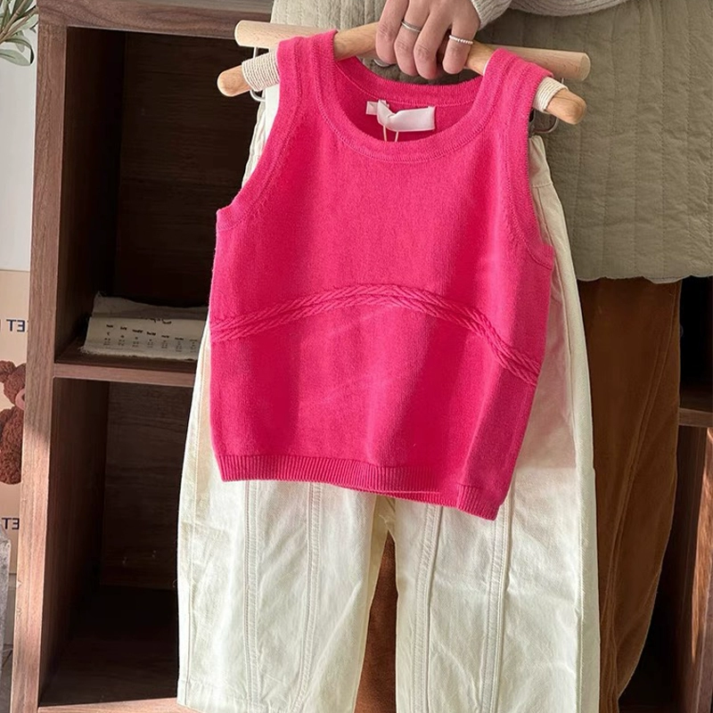 | nameOriginal | Internet celebrity children's clothing girls thin style knitted suit 2024 summer female treasure hollow vest wide leg two-piece trendy set |