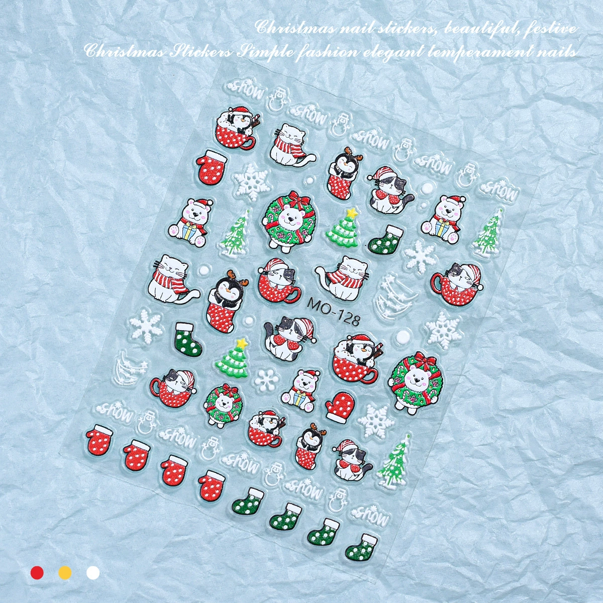 | nameOriginal | Internet celebrity Christmas nail art stickers European and American style cartoon Santa Claus snowman snowflake relief three-dimensional nail art stickers |