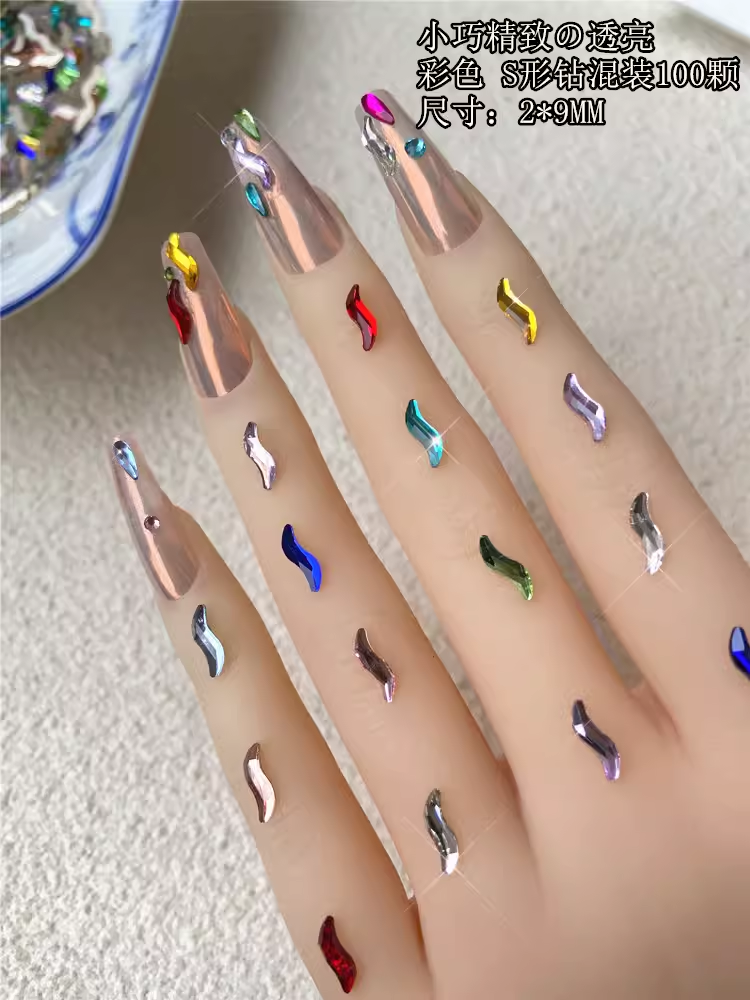 Internet celebrity color mixed flat bottom super shiny new nail art diamond