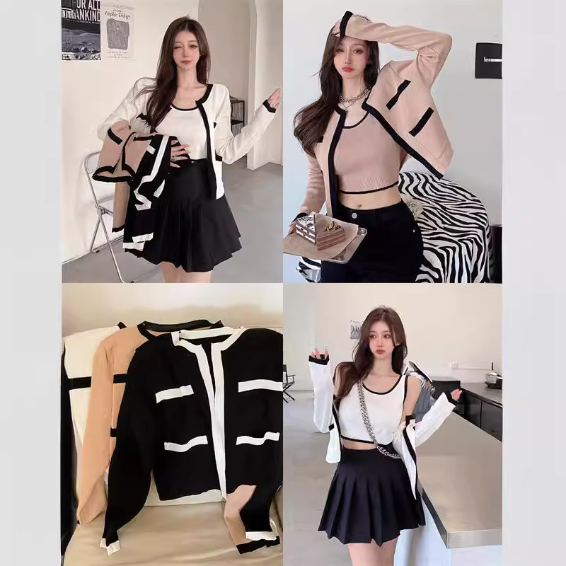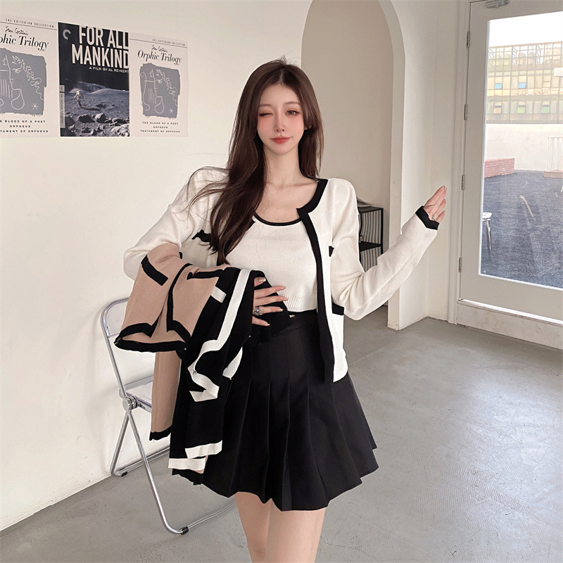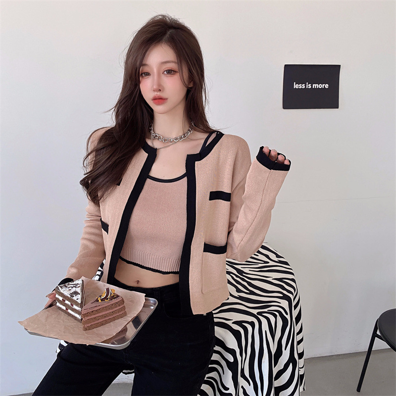 | nameOriginal | Internet Celebrity Contrast Knitted Cardigan Jacket Women's Autumn 2021 New Two-Piece Camisole Short Top |