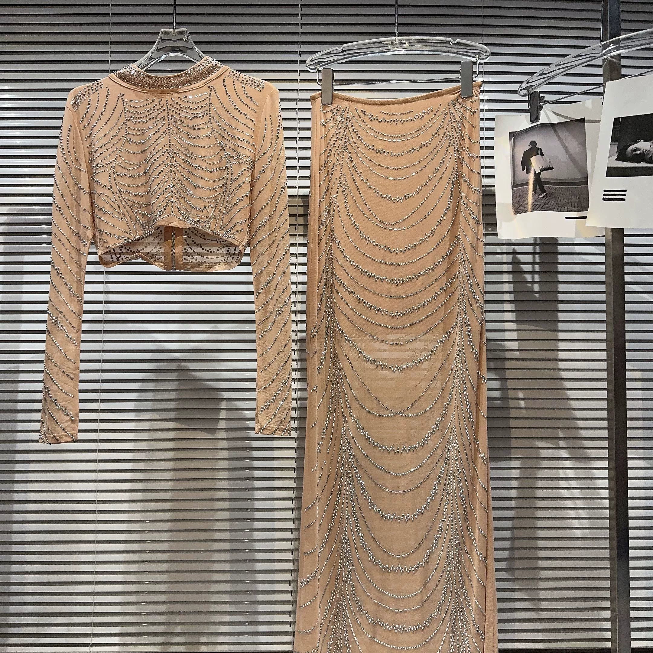 | nameOriginal | Internet celebrity dark heavy industry gauze long hip skirt with hot rhinestones |