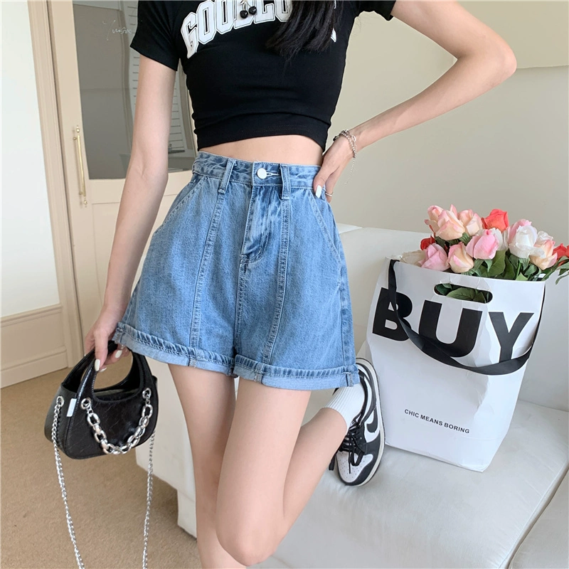| nameOriginal | Internet celebrity design curled hot girl high waist denim shorts |