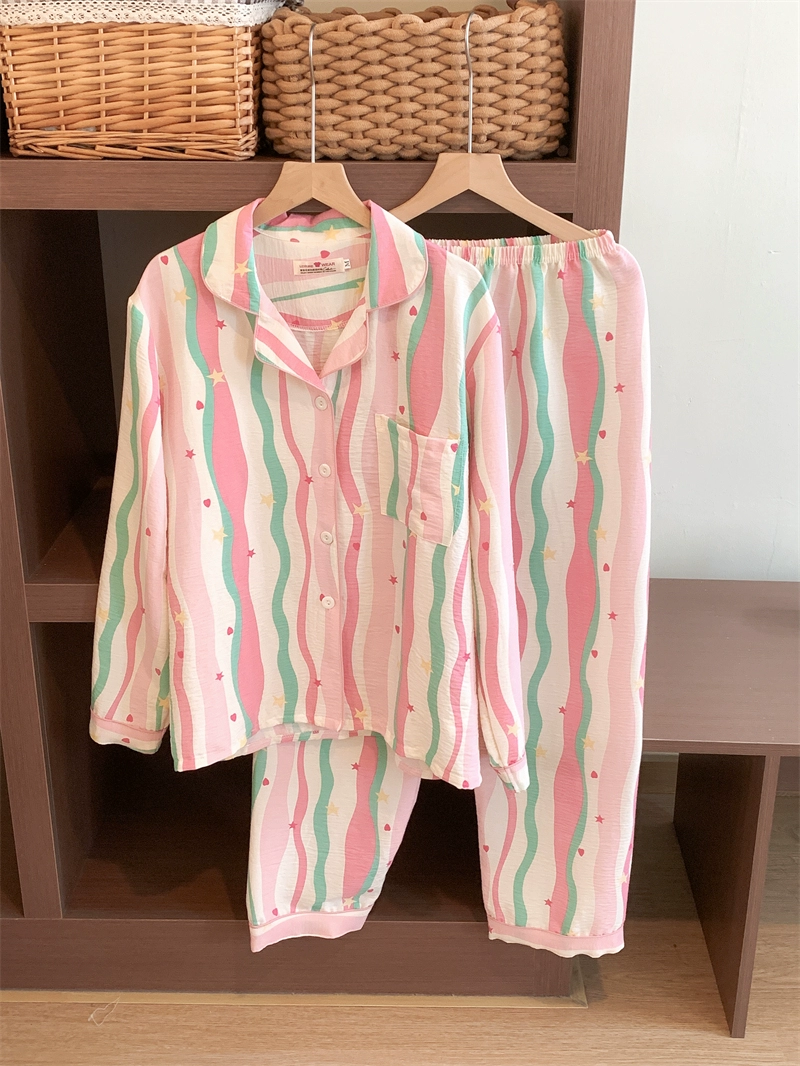 | nameOriginal | Internet celebrity dopamine women's sweet cotton striped pajamas |