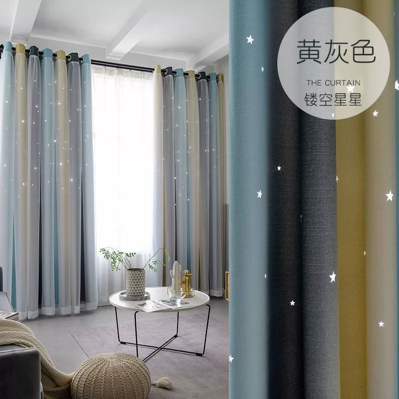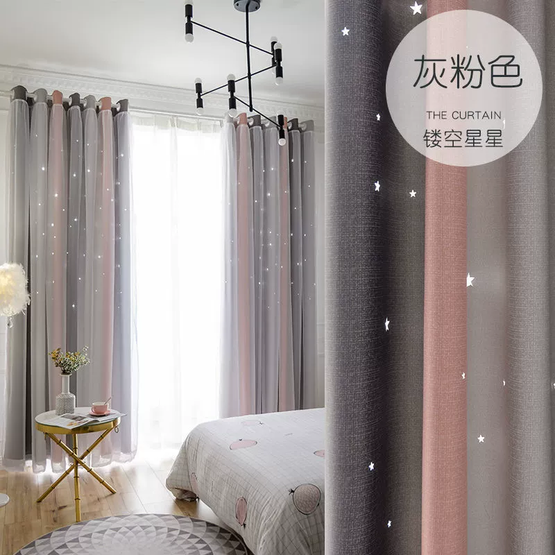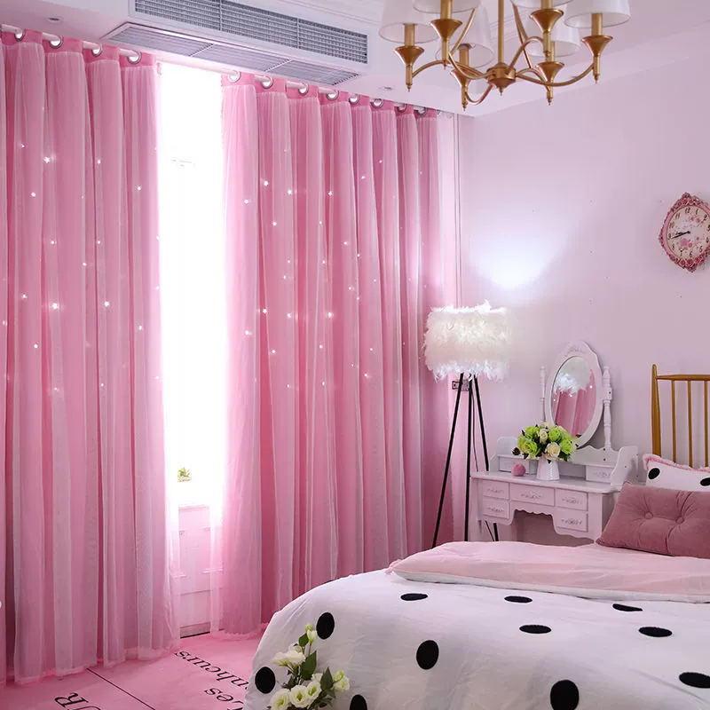 | nameOriginal | Internet celebrity double-layer hollow star princess style finished curtains girls' bedroom blackout bay window curtains cloth gauze one-piece |