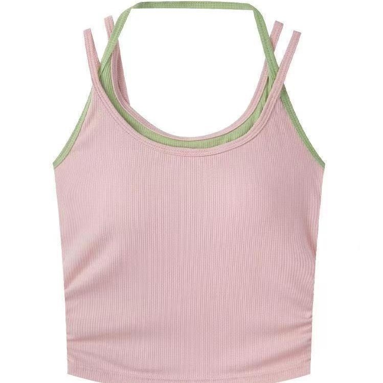 | nameOriginal | Internet Celebrity Explosions Dopamine Wear Camisole Women's Contrast Color Stitching Design Fake Two-piece Neck Spice Girl Beautiful Back Woman |