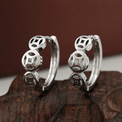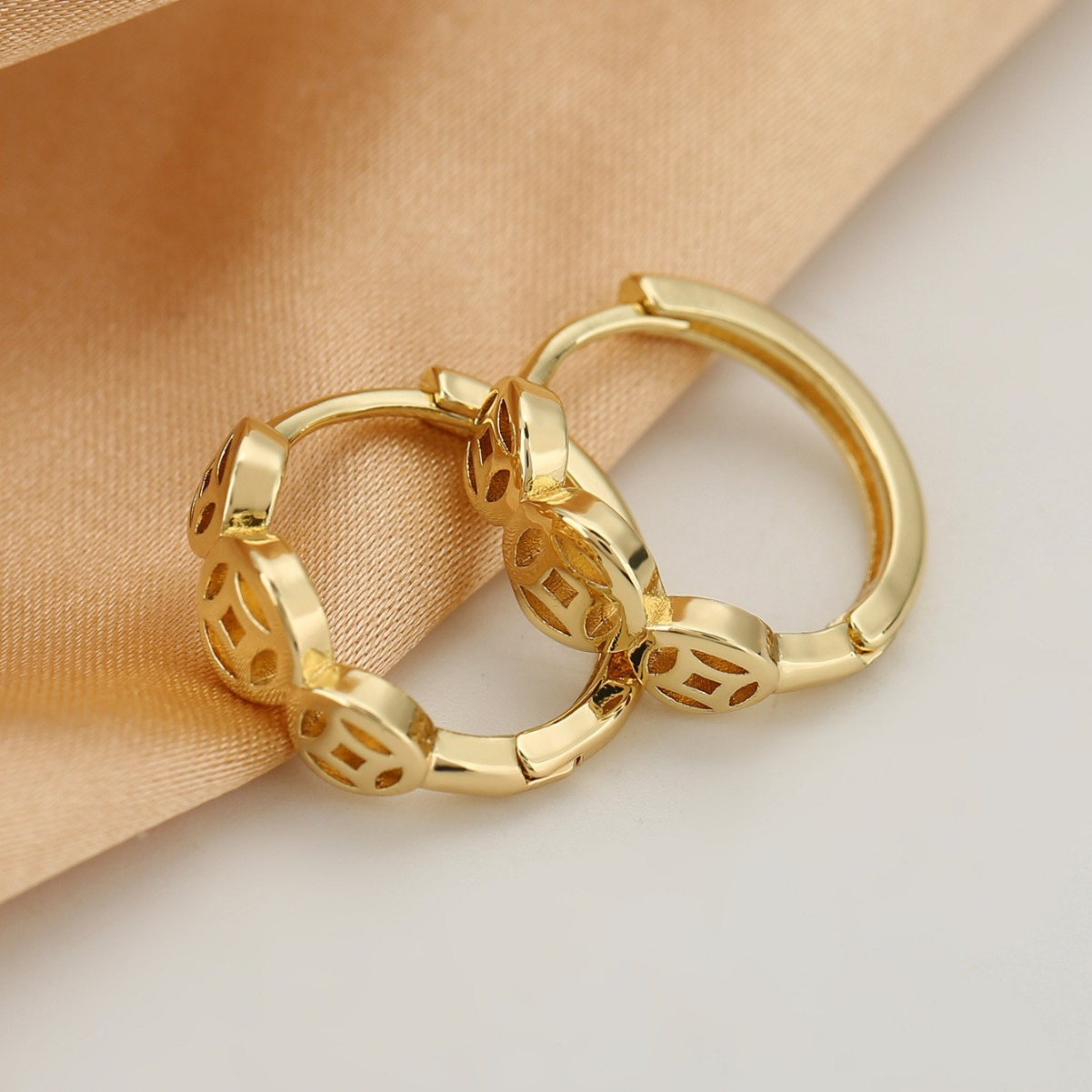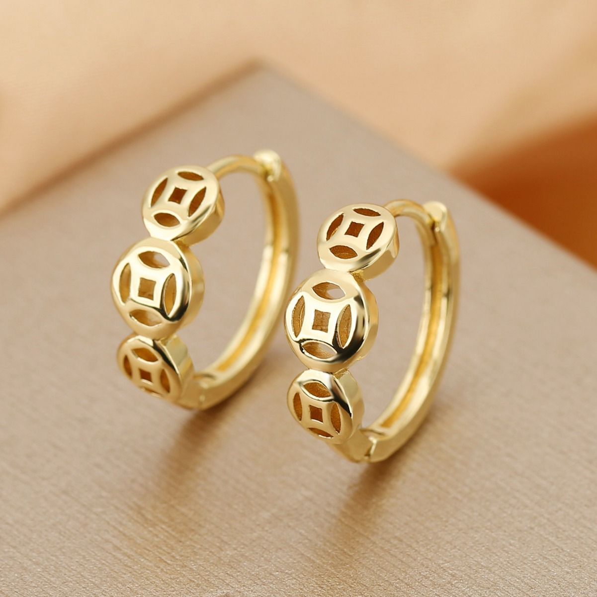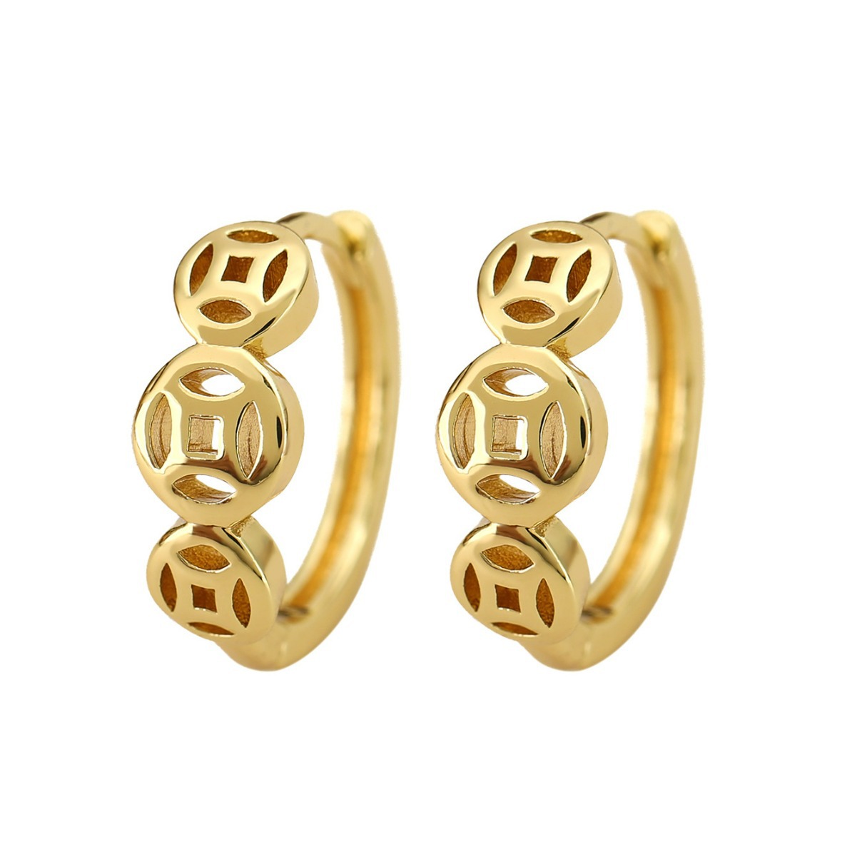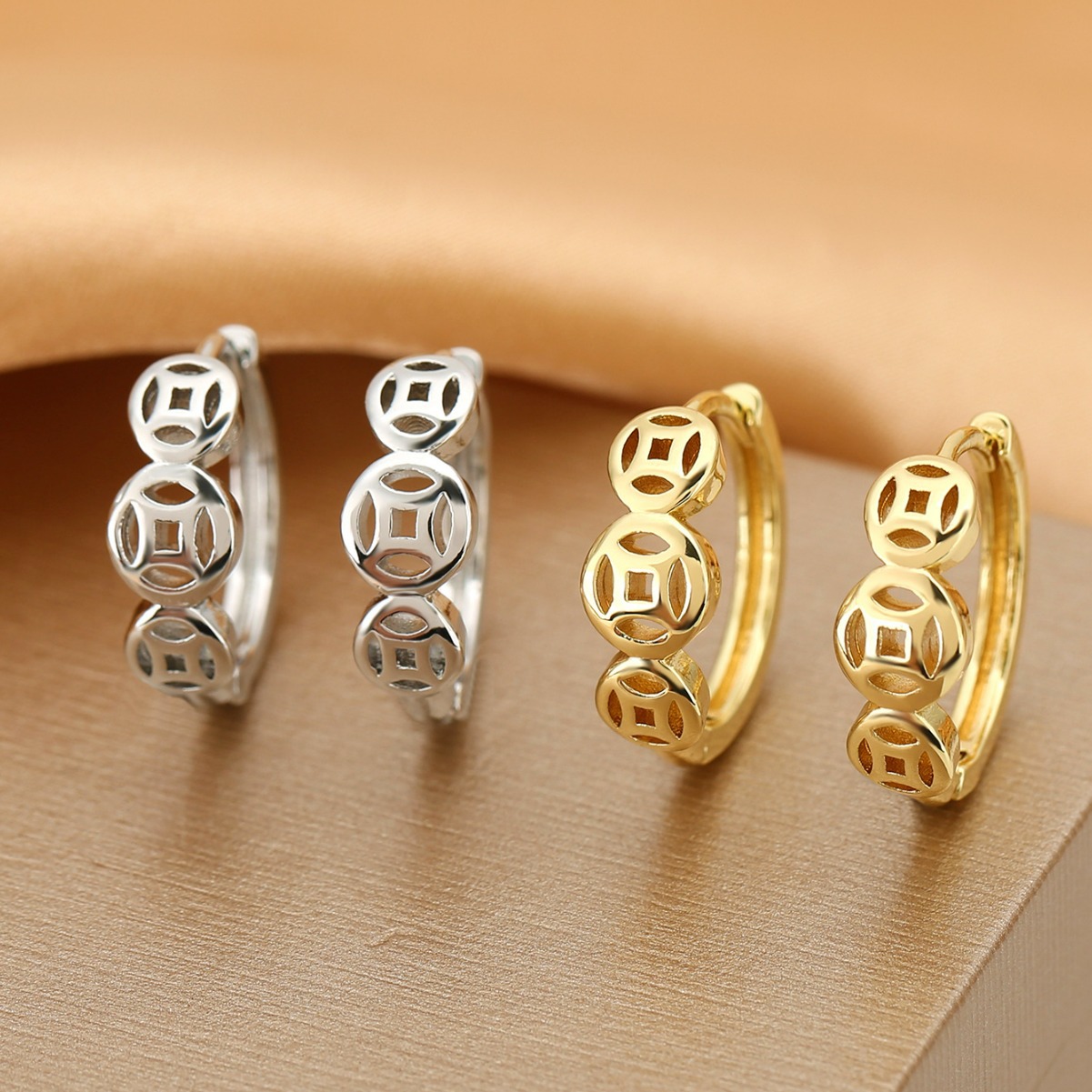 Internet celebrity exquisite glossy hollow earrings simple retro five emperors copper coin design personalized earrings Korean style trendy earrings