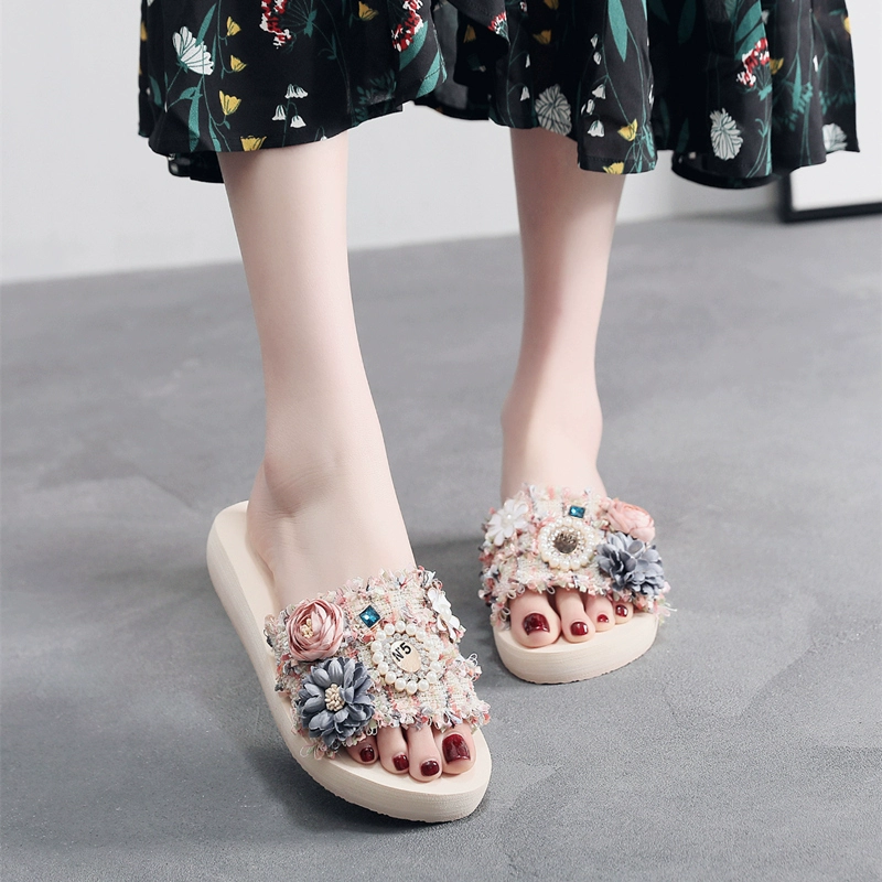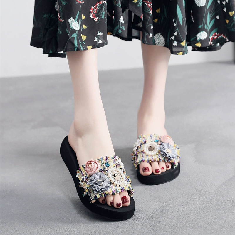 Internet celebrity fashion flower mid-heel thick-soled non-slip sandals
