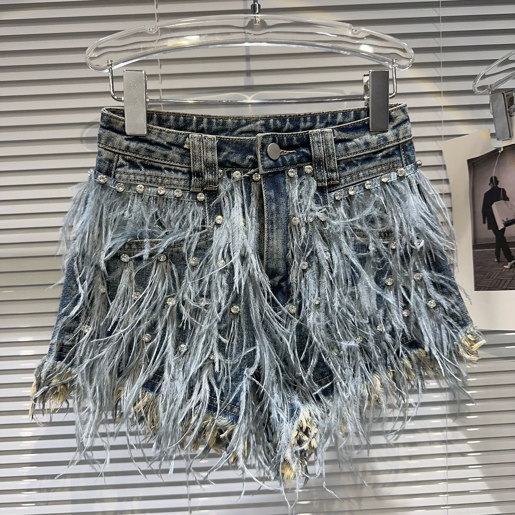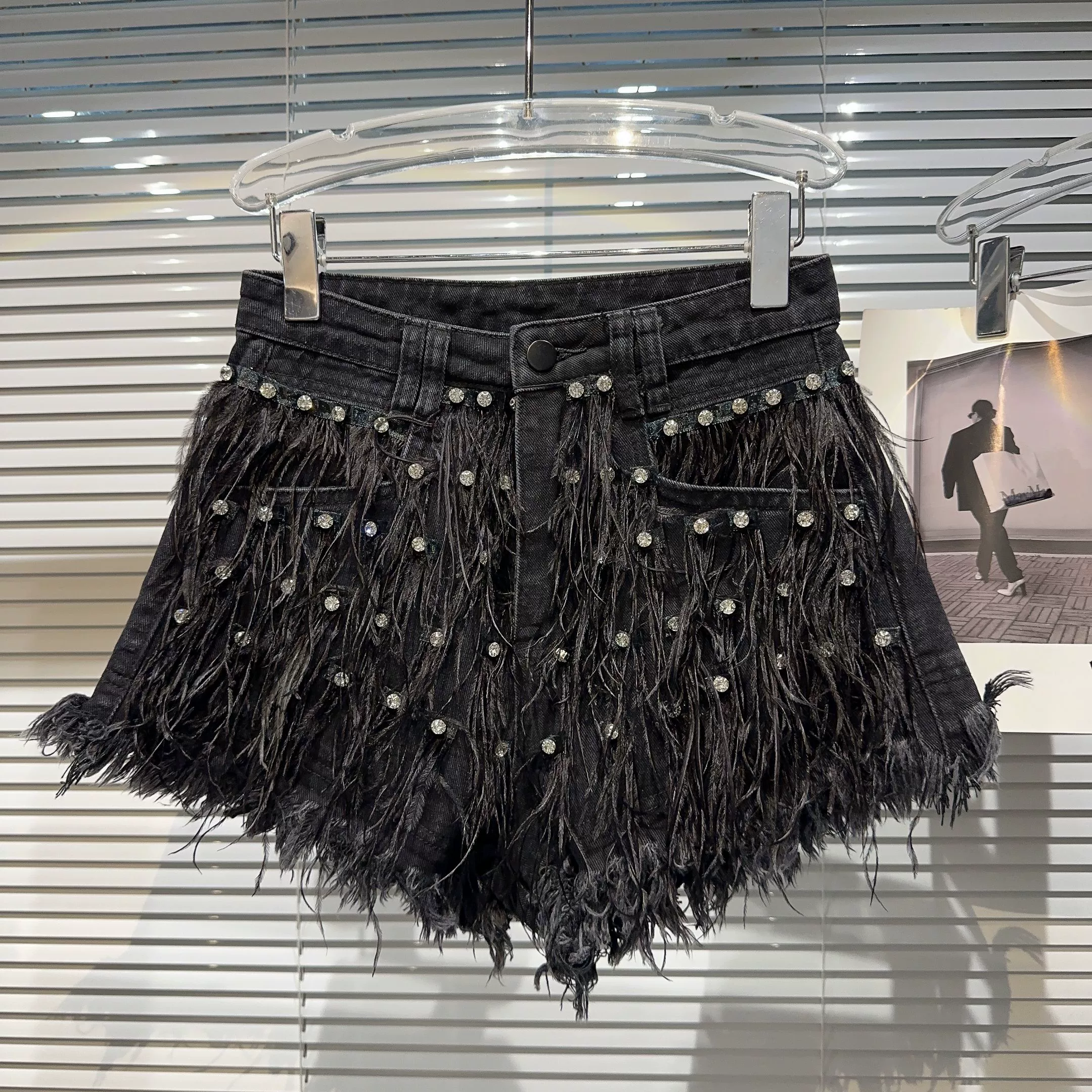 | nameOriginal | Internet celebrity feather three-quarter denim shorts with rhinestone beads |