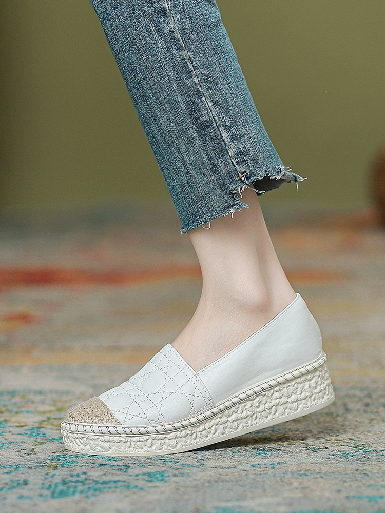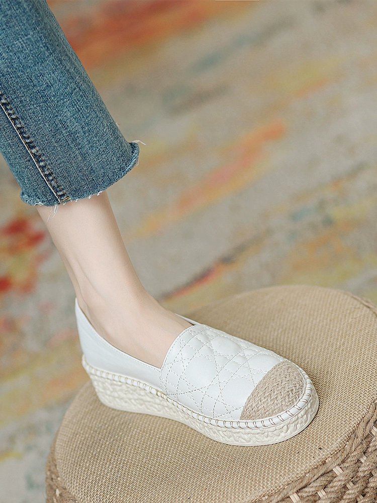 Internet celebrity fisherman shoes for women summer 2024 new thick-soled wedge-heeled small fragrant style shoes autumn casual slip-on loafers