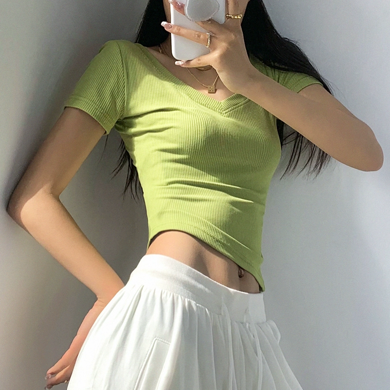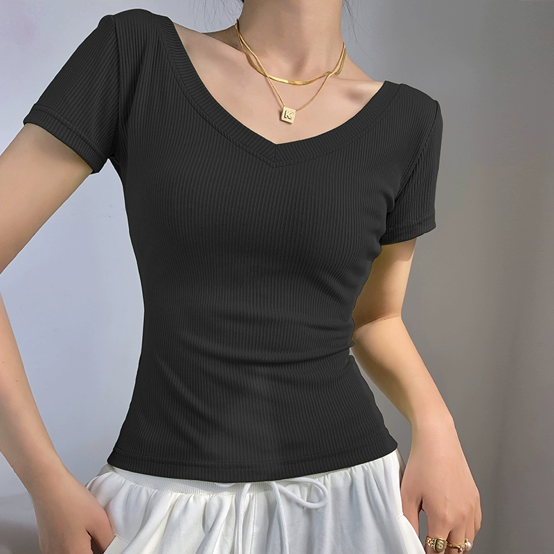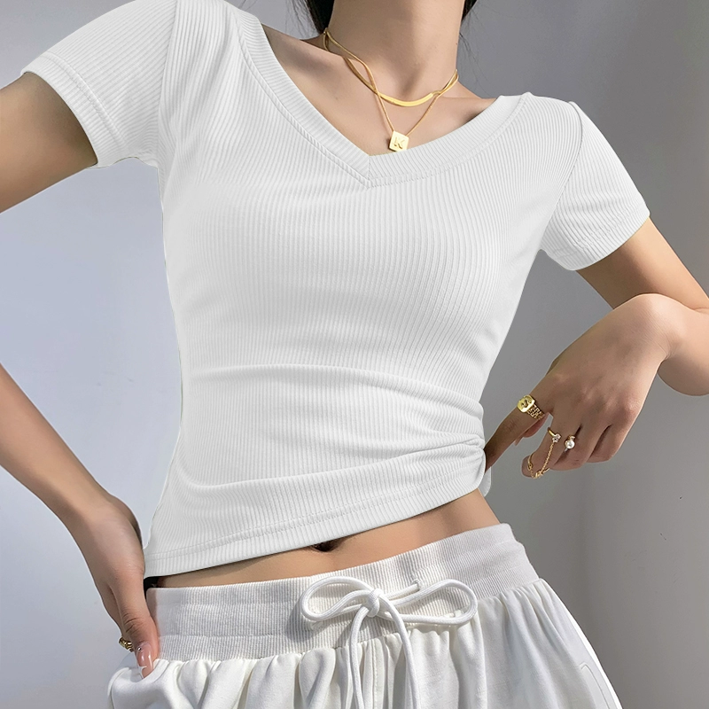 | nameOriginal | Internet celebrity fitness girl threaded sports V-neck t-shirt short sleeves |