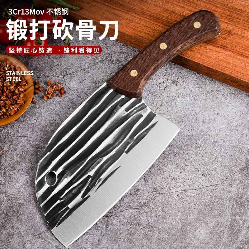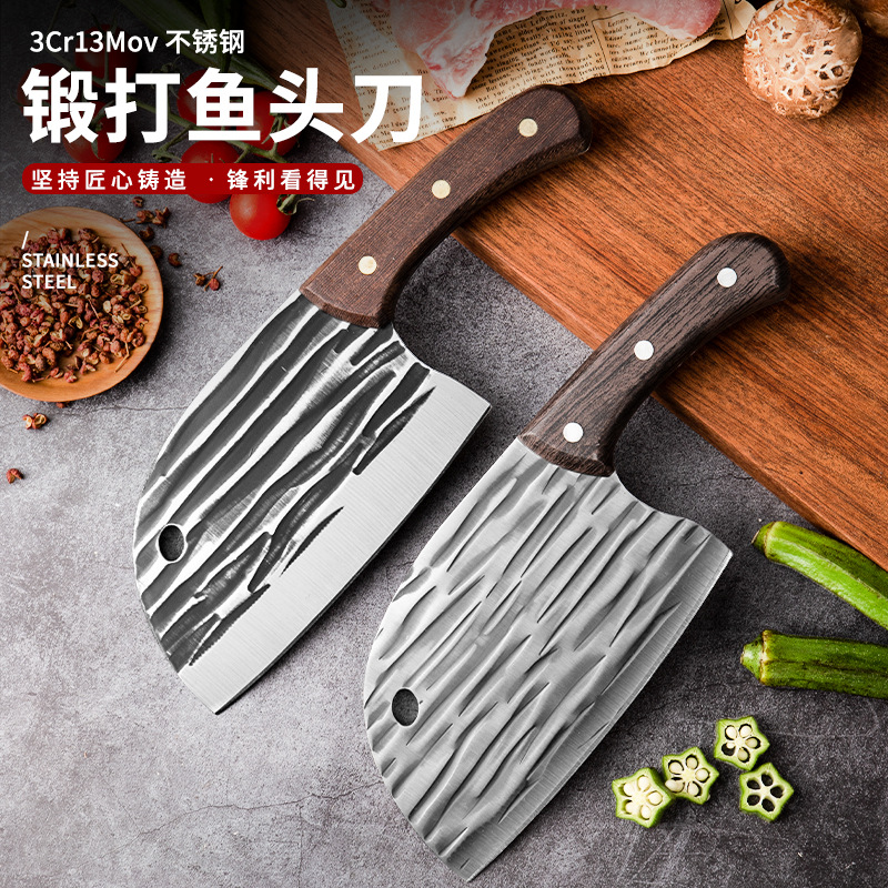 | nameOriginal | Internet celebrity forged fish head knife stainless steel kitchen knife sharp plastic handle knife forged hammer pattern meat cutter household knife |