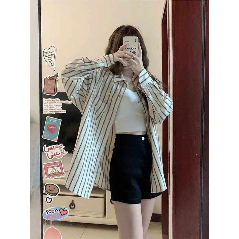| nameOriginal | Internet Celebrity Fried Street Salt Wear Striped Long-sleeved Shirt Small Vest Denim Shorts Age-reducing Women |