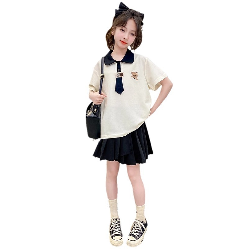 | nameOriginal | Internet Celebrity Girls Korean Style Skirt suit Big Kids Summer New Western Style Cartoon Top Fashionable Pleated Skirt Two-piece Set |