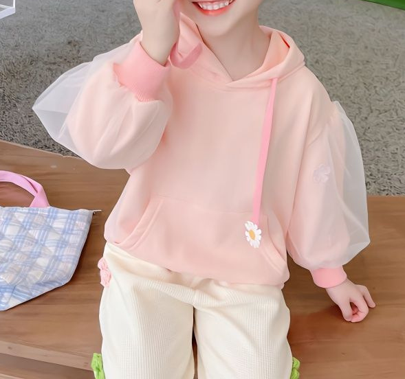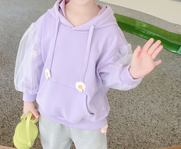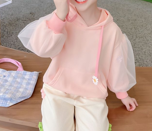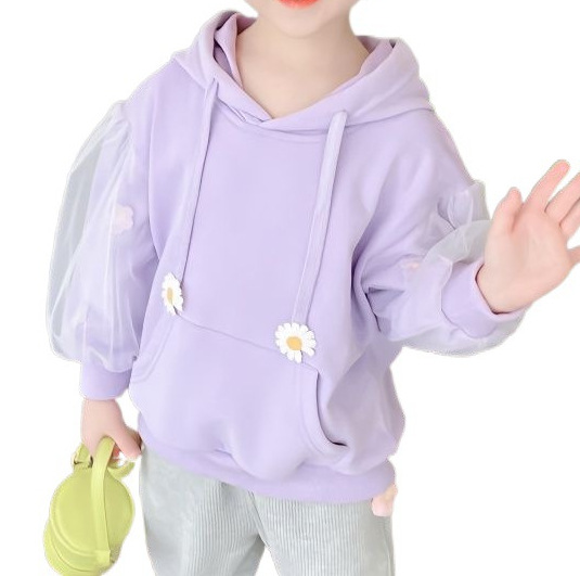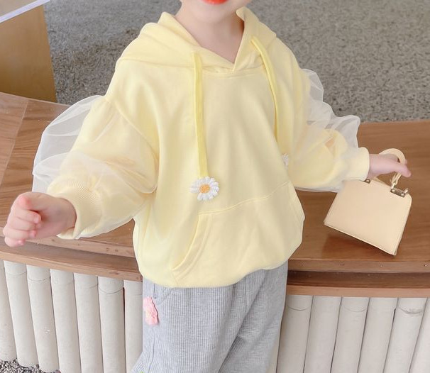 Internet Celebrity Girls’ Spring New Hoodie Hooded Foreign Style Bubble Sleeve Ins Long Sleeve Baby Top Sportswear Thin