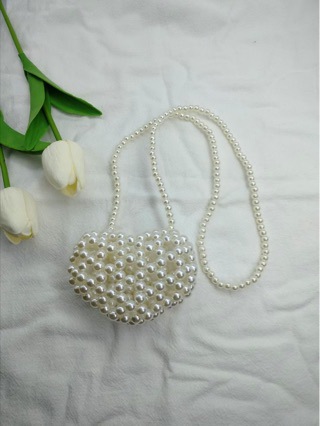 Internet Celebrity Hand-Woven Children’s Bag Women’s Cute Pearl Beaded Love Mouth Red Bag Mini Girl’s Hand Bag