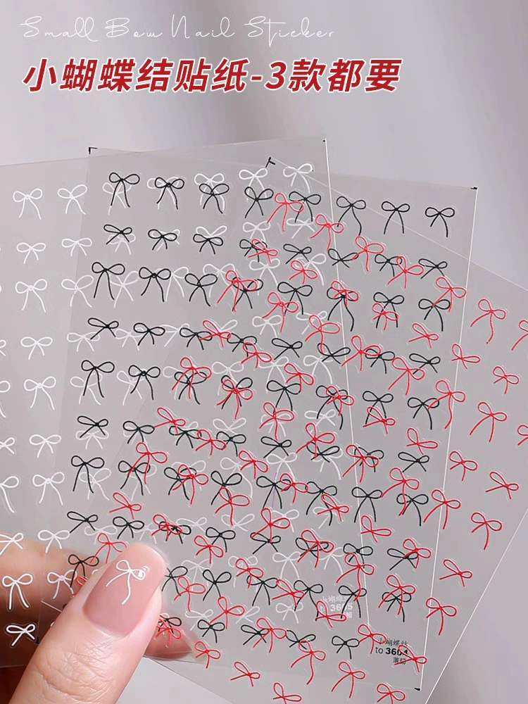| nameOriginal | Internet celebrity hot new year red, black and white bronzing silver thin tough bow nail art stickers nail decorations small accessories |